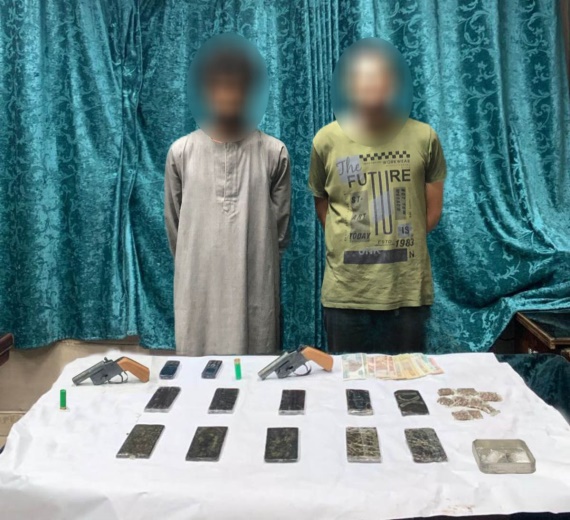 وفى الأقصر؛ ضبط عنصرين إجراميين "لهما معلومات جنائية" وبحوزتهما 3 كيلو جرام من مخدر الحشيش- كمية من مخدرى "الهيروين، الشابو"- 2 فرد محلى وطلقتين).