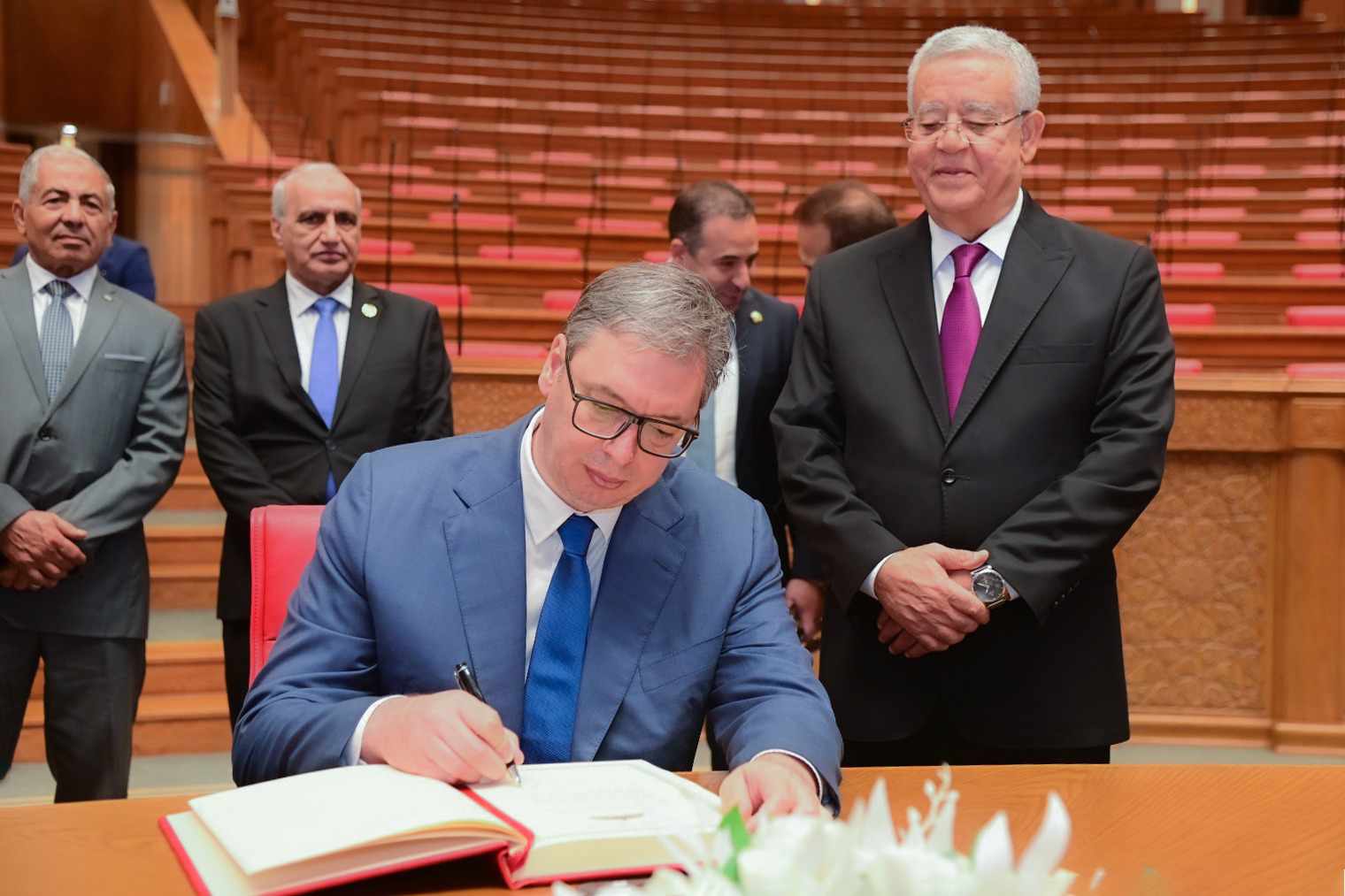 من جانبه، أبدى ألكسندر فوتشيتش، رئيس جمهورية صربيا، تقديره التام لاستقباله بمقر مجلس النواب بالعاصمة الإدارية الجديدة، في ضوء العلاقات التاريخية بين صربيا ومصر، مستعرضا خلال اللقاء اتفاقيات التعاون التي تم توقيعها خلال زيارته لمصر.