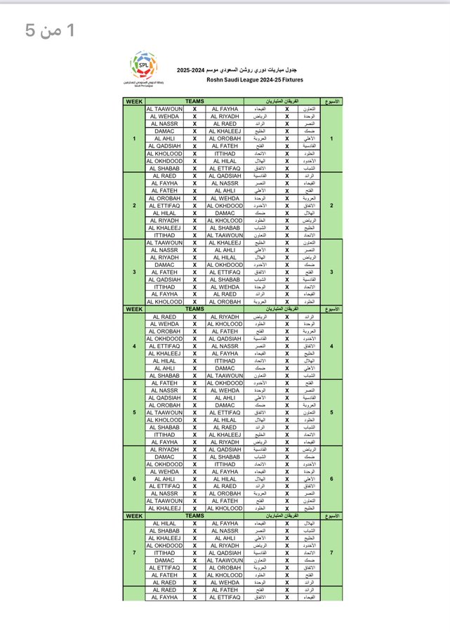 رابطة الدوري السعودي تنشر جدول مباريات الموسم الجديد