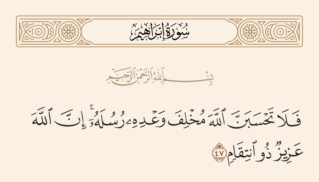 قال تعالى: «فَلَا تَحْسَبَنَّ اللَّهَ مُخْلِفَ وَعْدِهِ رُسُلَهُ إِنَّ اللَّهَ عَزِيزٌ ذُو انْتِقَامٍ».