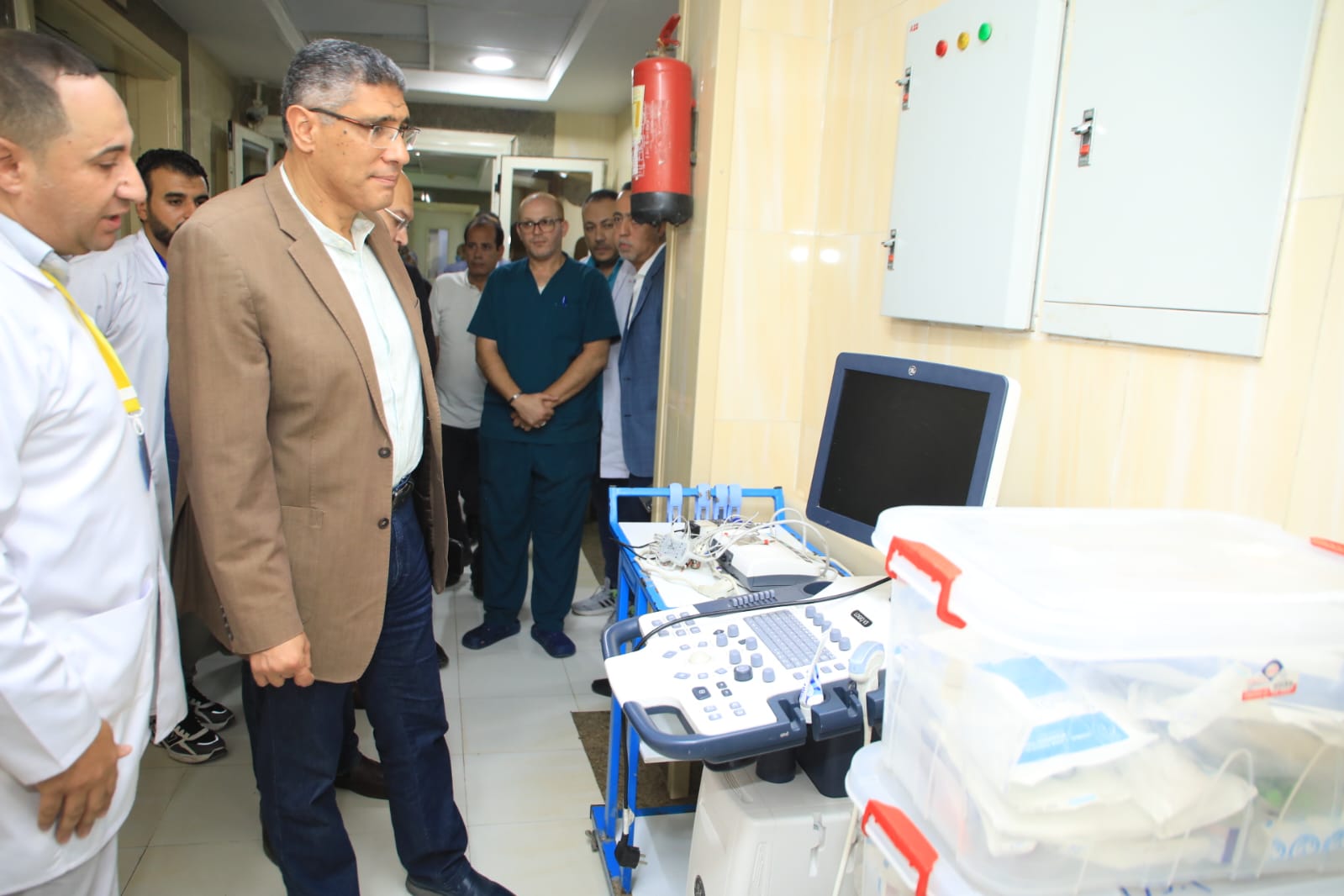 شملت جولة المحافظ المرور على أقسام الإستقبال والرعاية والحضانات والغسيل الكلوى ووحدة معالجة المياه.