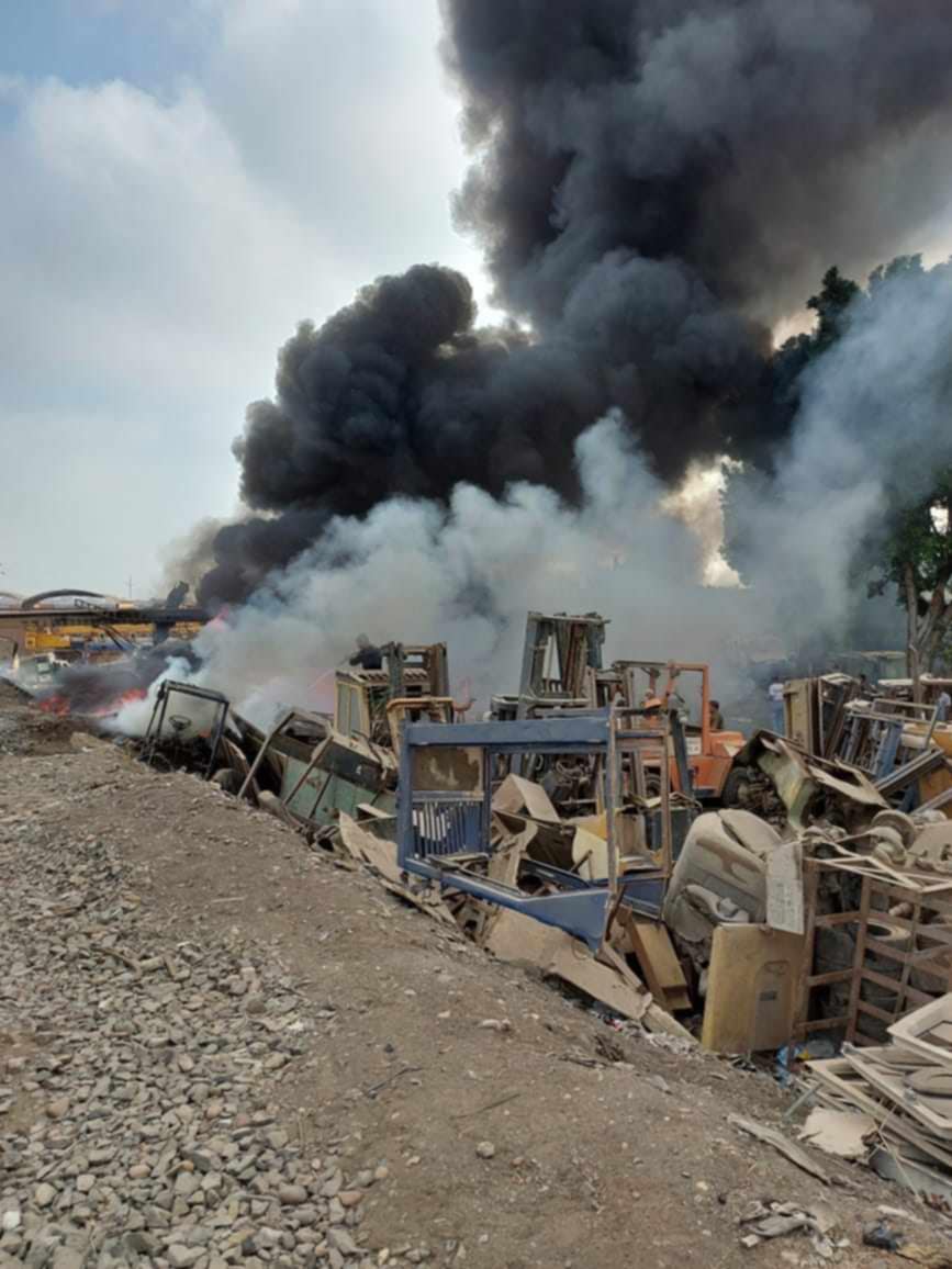 حريق داخل مخزن للكاوتش والخردة بقليوب
