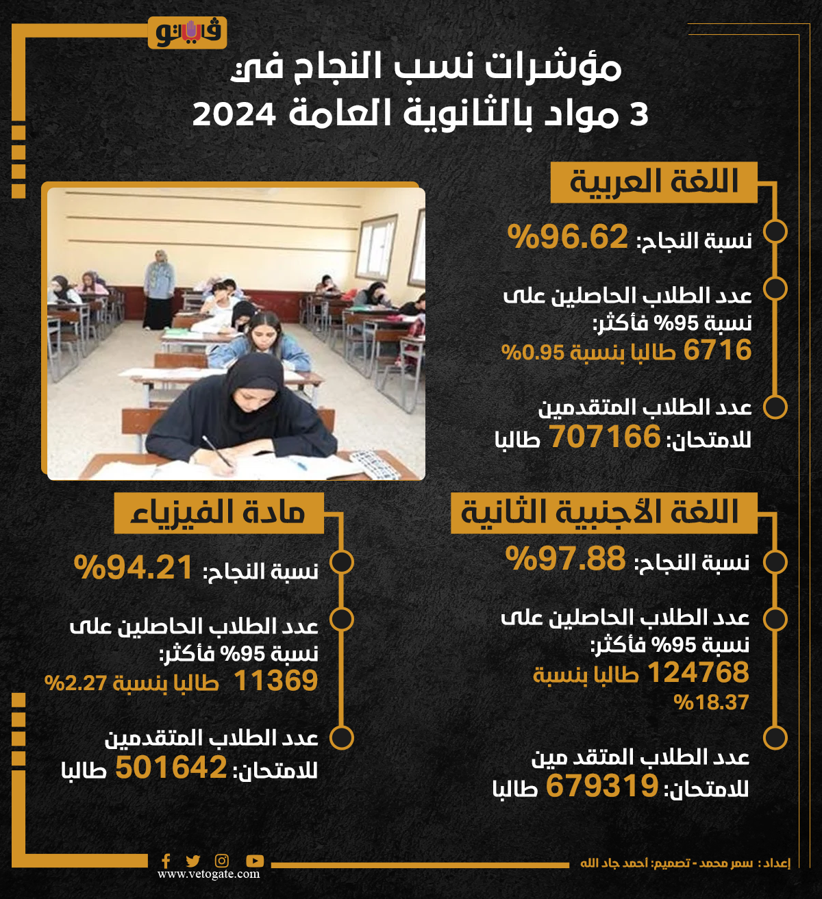 مؤشرات نسب النجاح في 3 مواد بالثانوية العامة 2024 (إنفوجراف) الثلاثاء 16/يوليو/2024 - 11:16 ص 7/16/2024 11:16:19 AM امتحانات الثانوية العامة سمر محمد شارك طباعة 18 حجم الخط شارك طباعة الثانوية العامة الثانوية العامة 2024 اللغة الأجنبية الثانية اللغة العربية مادة اللغة العربية مادة الفيزياء