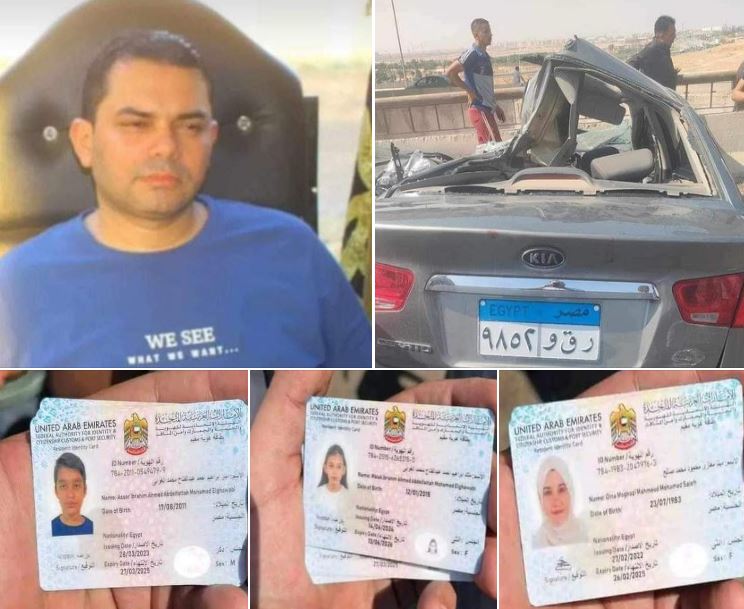 وأسماء الضحايا هم “ابراهيم أحمد عبدالفتاح الغوابي ونجليه أحمد واسر ابراهيم الغوابي، وابنته ملك وزوجته دينا مغازي”.