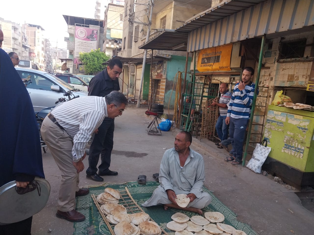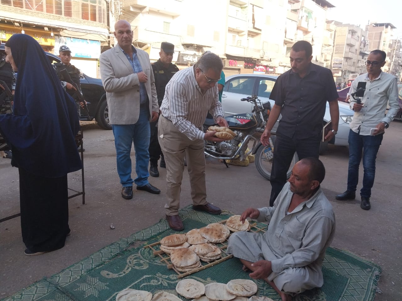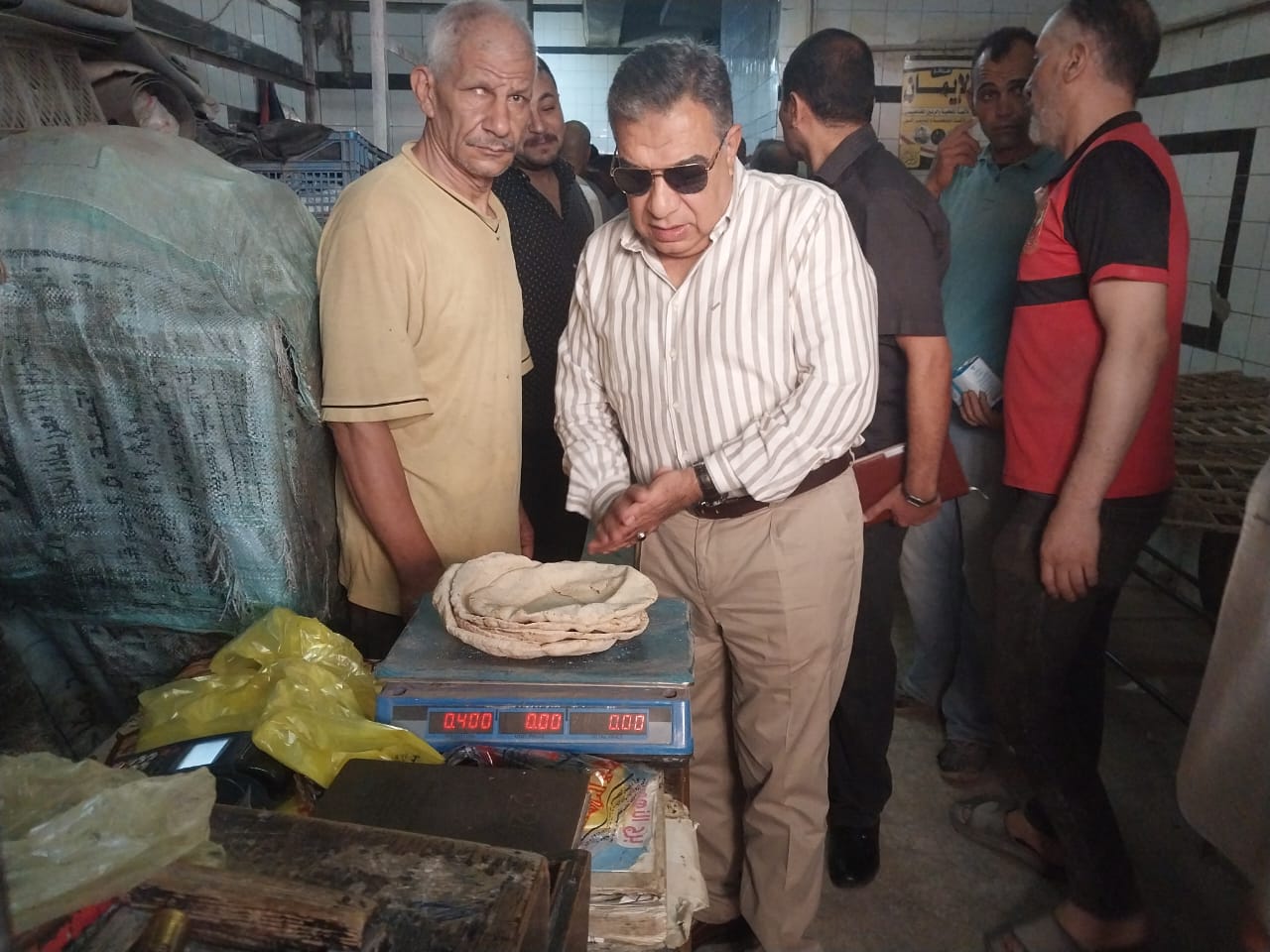 مصادرة بطاقات تموين بحوزة شخص خلال جولة لمحافظ الدقهلية على المخابز (صور)
