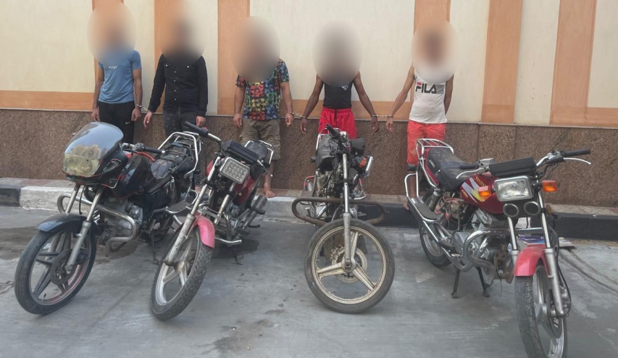 وضبط (5 أشخاص – لـ "4 منهم معلومات جنائية" – من بينهم 3 عملاء سيىء النية) لقيامهم بتكوين تشكيل عصابى تخصص نشاطه الإجرامى فى إرتكاب جرائم سرقة الدراجات النارية بأسلوب "المغافلة"، واعترفوا بارتكاب "4 وقائع سرقة"، وأرشدوا عن الدراجات النارية المستولى عليها، وتم إتخاذ الإجراءات القانونية.