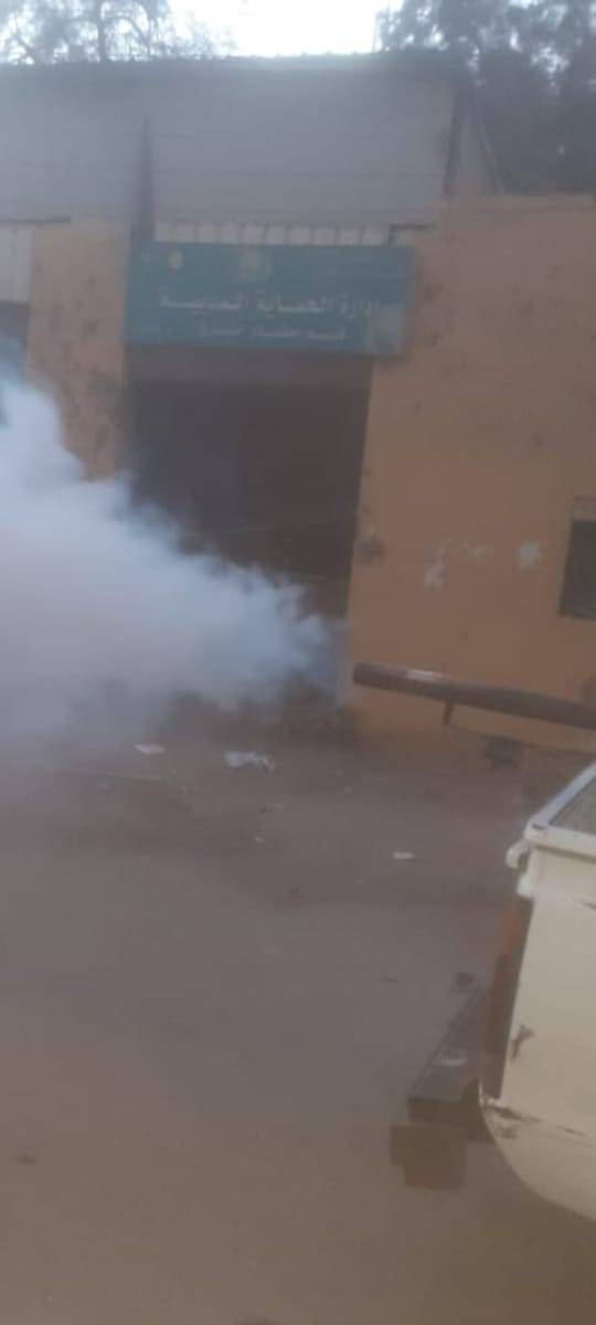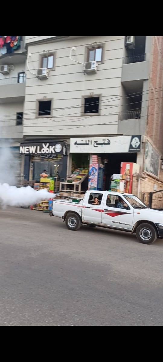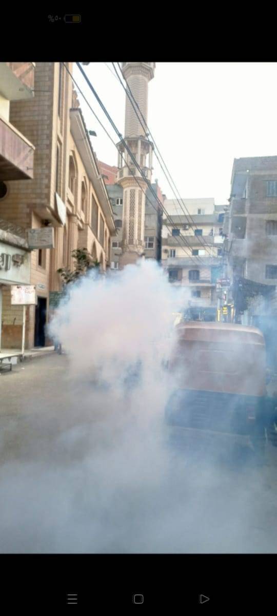 وكذا الضباب الصباحى بشارع سعد زغلول وحى الساحة الشعبية ومحيط مجمع المحاكم والدروس وذلك للقضاء على الناموس والحشرات الطائرة.