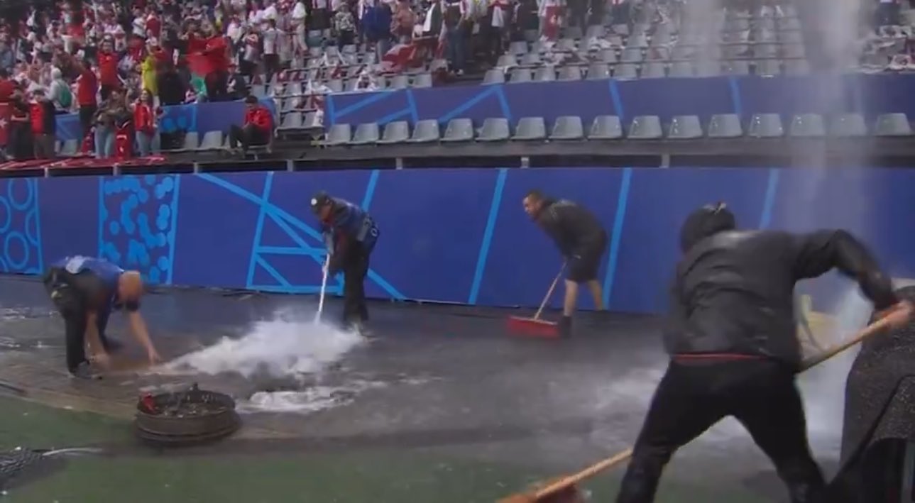 وشهدت النسخة 17 من بطولة يورو 2024، التي أقيمت في ألمانيا، أحداثًا غريبة طالت البنية التحتية الرياضية في ألمانيا، مثل غرق الملاعب بمياه الأمطار، وهلع المتفرجين من هجوم أسراب النحل عليهم.