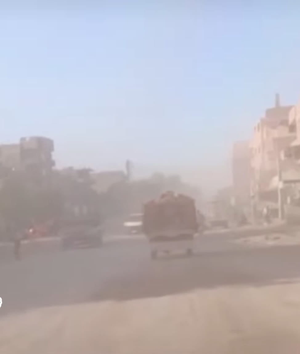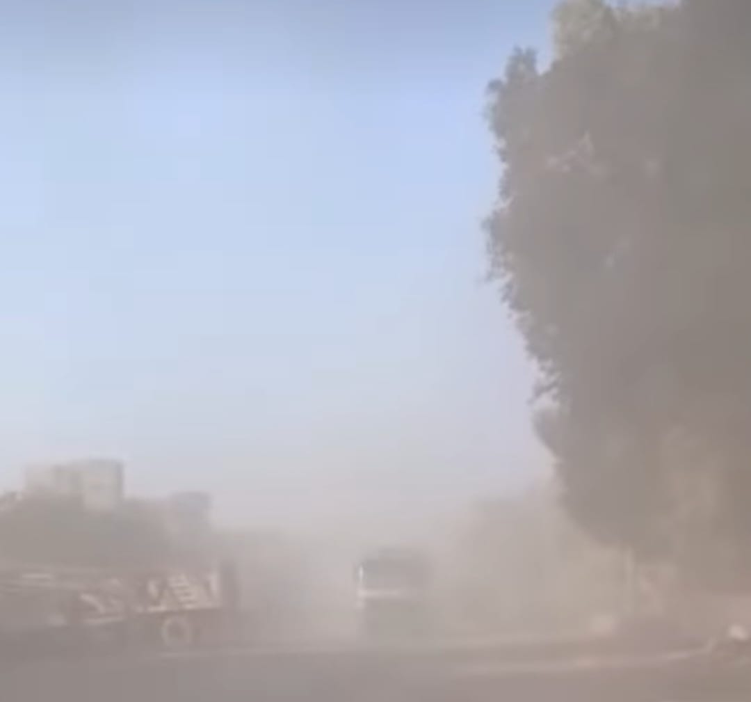 سحابة ترابية بالبوابة الرئيسية له من شمال مدينة الصف