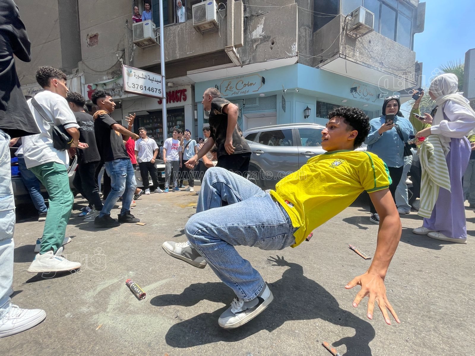 وقام الطلاب بالرقص على أغاني “الدي جي” أمام اللجان، وإشعال الشماريخ وصلات من الرقص على الأغاني الشعبية، بينما احتفال الطالبات مع بعضهن بالغناء "الناجح يرفع أيده"، وإطلاق الألوان مع الرقص مع أنغام المزمار بشوارع مصر الجديدة، وسط حالة من السعادة.