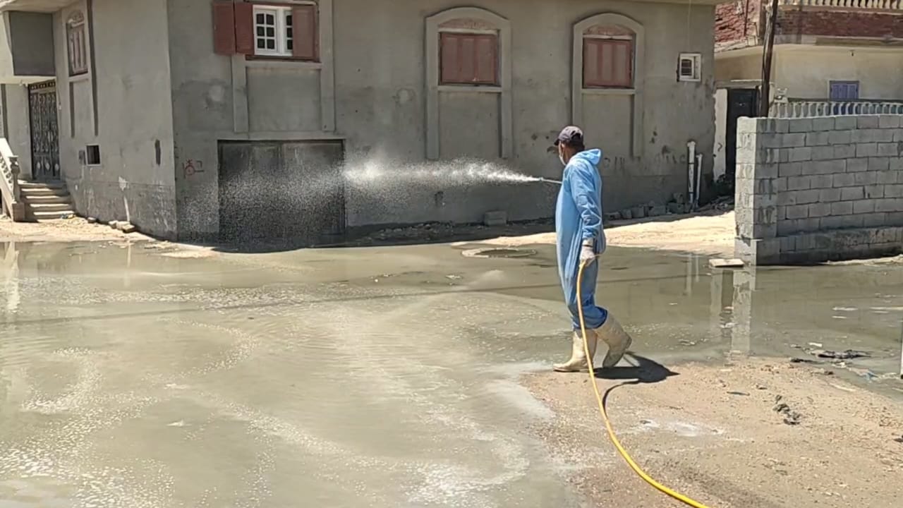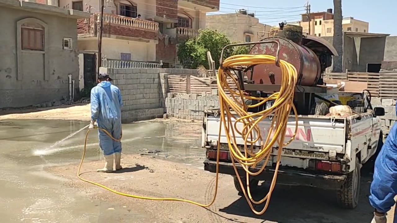 الطب الوقائي: تطهير ورش المناطق المتضررة من تعطل محطة الصرف الصحي بالعريش