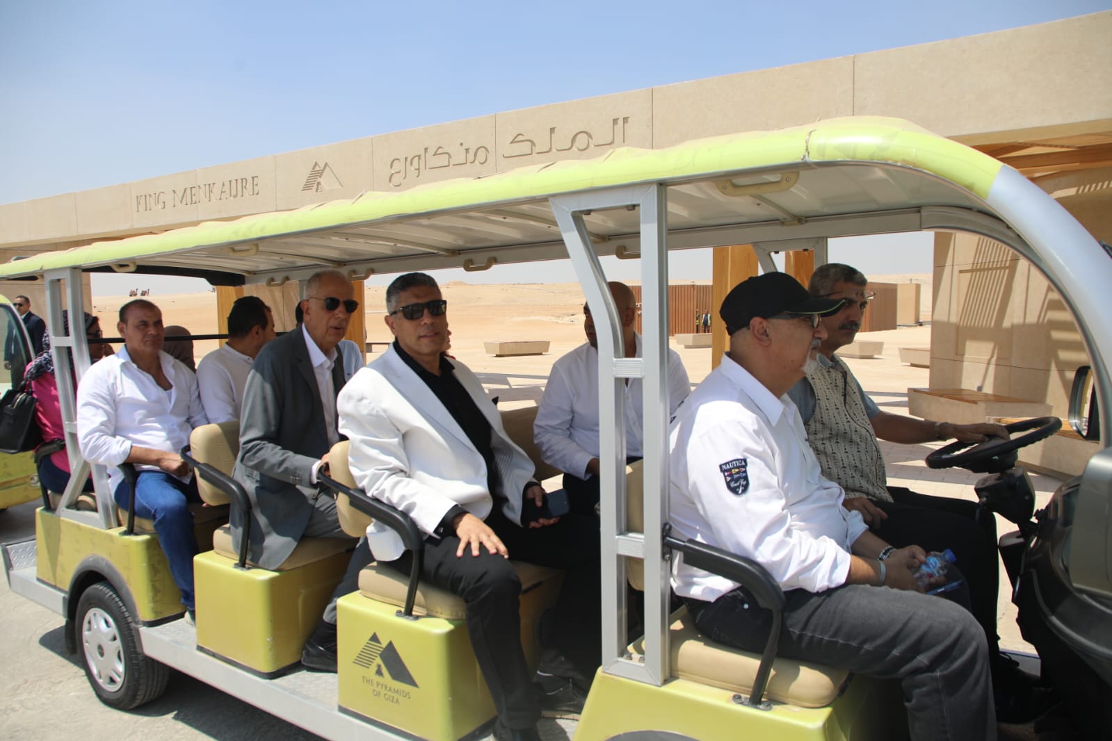 وأعقب ذلك جولة ميدانية للمحافظ لخط سير الأفواج السياحية ومراحل التطوير بدءًا من مدخل الأهرامات من طريق الفيوم السريع، تفقد خلالها المحافظ مسار الزيارة بدءًا من بوابات دخول الزوار وأماكن انتظار السيارات والقاعة الضخمة لشرح تاريخ الأهرامات ومراحل الزيارة والبازارات وأماكن تقديم الخدمات للزوار ومنظومة النقل الصديقة للبيئة.