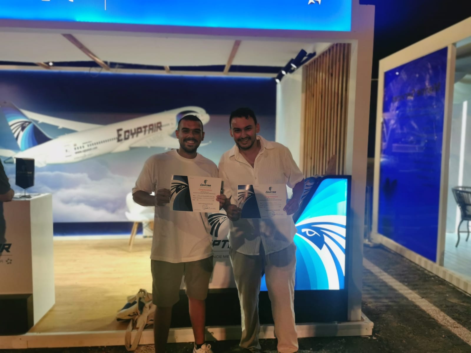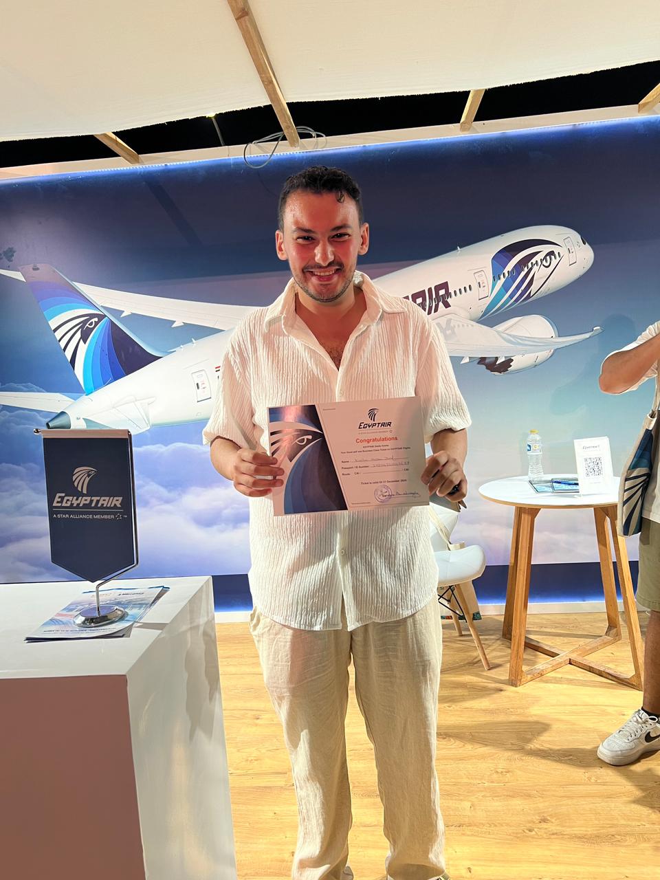 وشاركت مصر للطيران بجناح متميز شهد إقبال كبير من المشاركين منذ بدء فاعليات المعرض وقامت من خلاله بالتسويق لأنشطة الشركة وعروضها الترويجية وبرامجها المتنوعة والتعرف على الخدمات المختلفة التي تقدمها مصر للطيران لمسافريها وكذلك التسويق لبرنامج المسافر الدائم كما تم اهداء 1000 نقطة أميال bonus miles لأعضاء البرنامج الجدد والحاليين بالإضافة إلى إجراء سحب على 4 تذاكر مجانية على درجة رجال الأعمال، كما تم تقديم هدايا تذكارية لرواد الجناح تحمل شعار مصر للطيران.