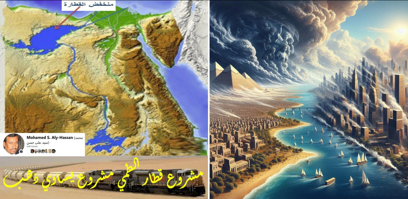 وقال الدكتور محمد سيد علي عن منخفض القطارة ومشروع قطار الذهب: "منخفض القطارة ودوره فى سيناريو يوم الطوفان أو يوم القيامة.. فى البداية دعونا نبدأ بالتعريفات التالية: فى علم أسمه إدارة الأزمات وعلم ثاني أسمه إدارة الكوارث وعلم ثالث أكثر أهمية أسمه التخطيط لمواجهة الكوارث المتوقعة."