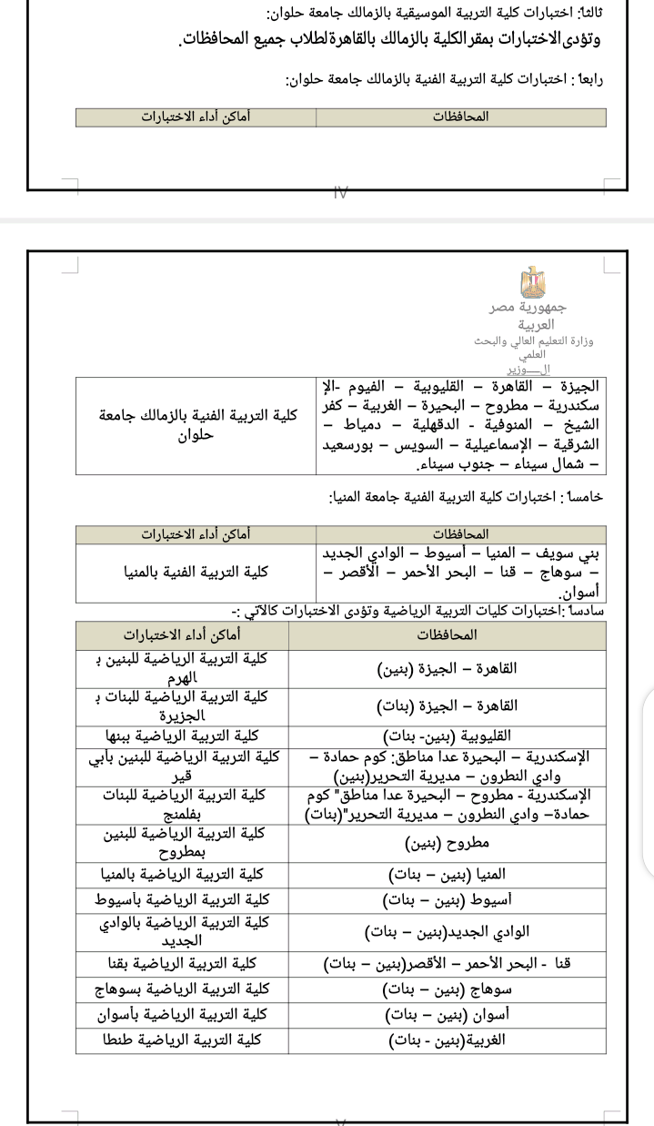 تنسيق الجامعات 2024، قائمة بأسماء الكليات التي يشترط القبول بها اجتياز اختبارات القدرات وهي:-