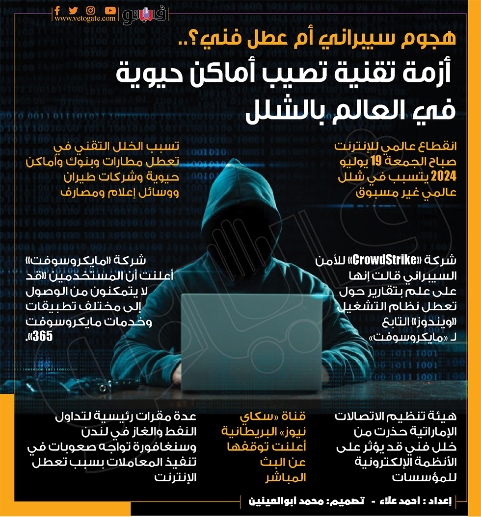 هجوم سيبراني أم عطل فني؟.. أزمة تقنية تصيب أماكن حيوية في العالم بالشلل (إنفوجراف) الجمعة 19/يوليو/2024 - 04:19 م 7/19/2024 4:19:19 PM هجوم سيبراني، فيتو احمد علاء شارك طباعة 18 حجم الخط شارك طباعة هجوم سيراني ”مايكروسوفت انقطاع خدمات الانترنت العالمي الانترنت شركة CrowdStrike للأمن السيبراني CrowdStrike ويندوز