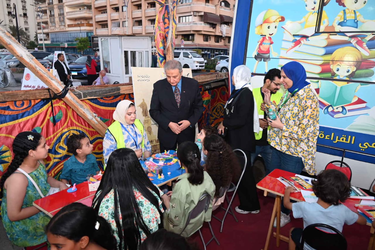 مكتبة مصر العامة المتنقلة تشارك في معرض بورسعيد السابع للكتاب (صور)