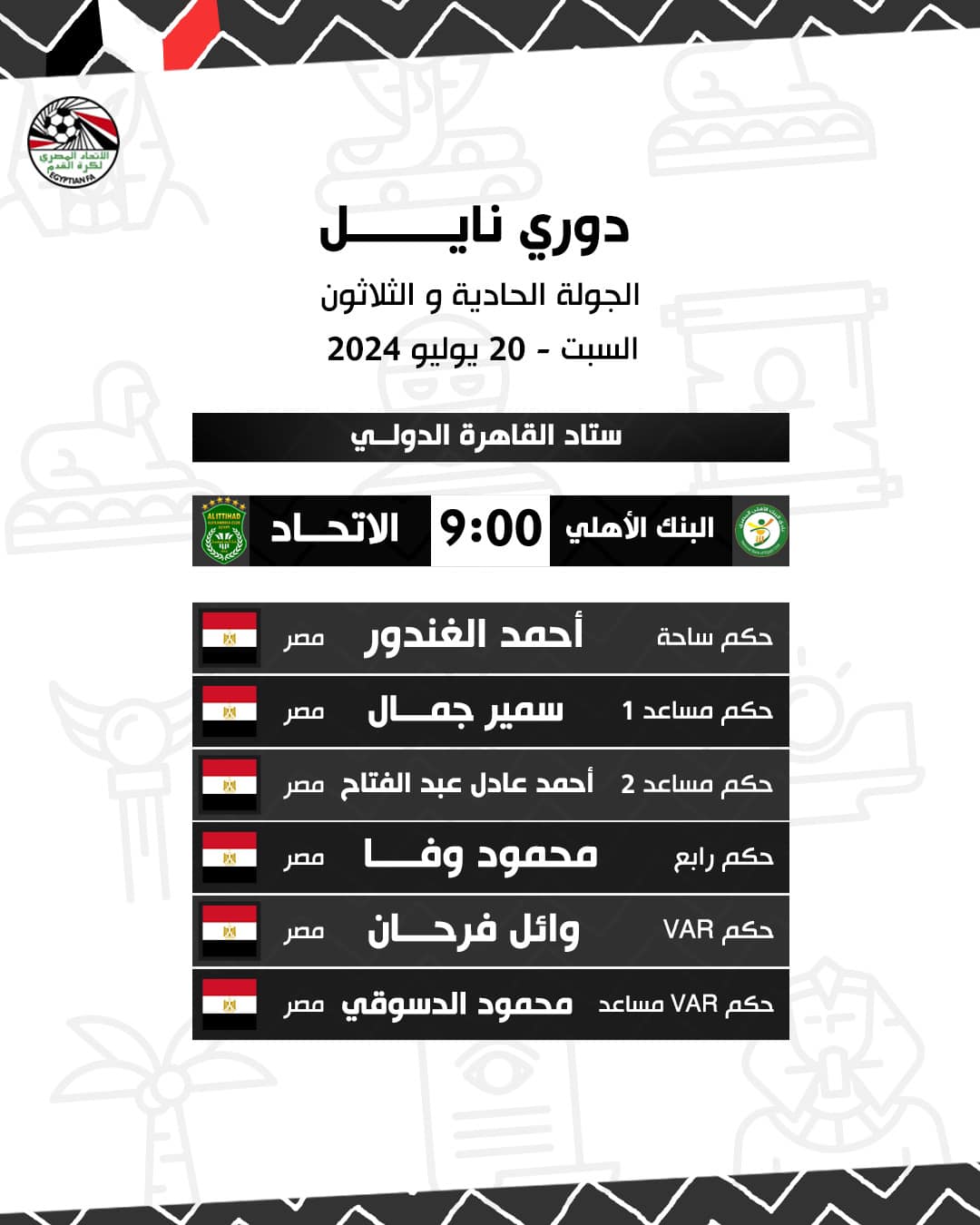 حكام مباراة البنك الأهلي ضد الاتحاد السكندري