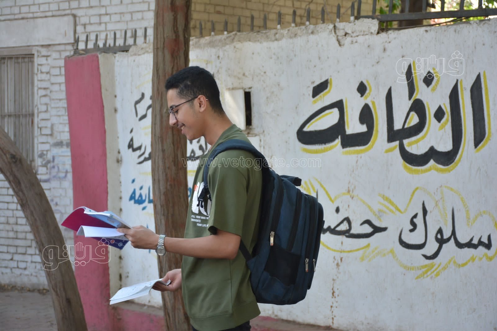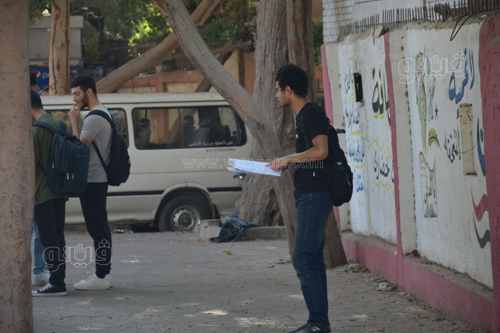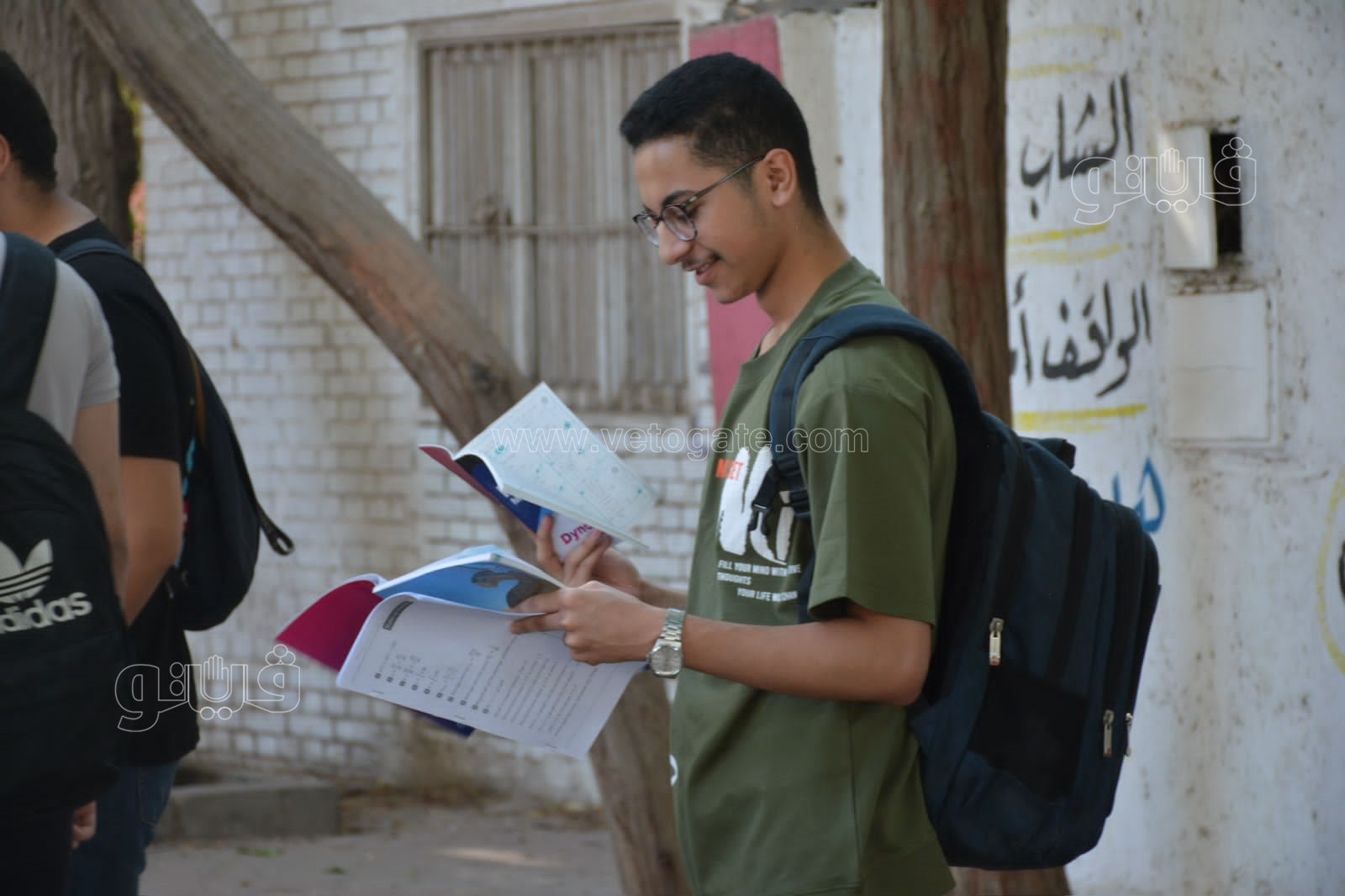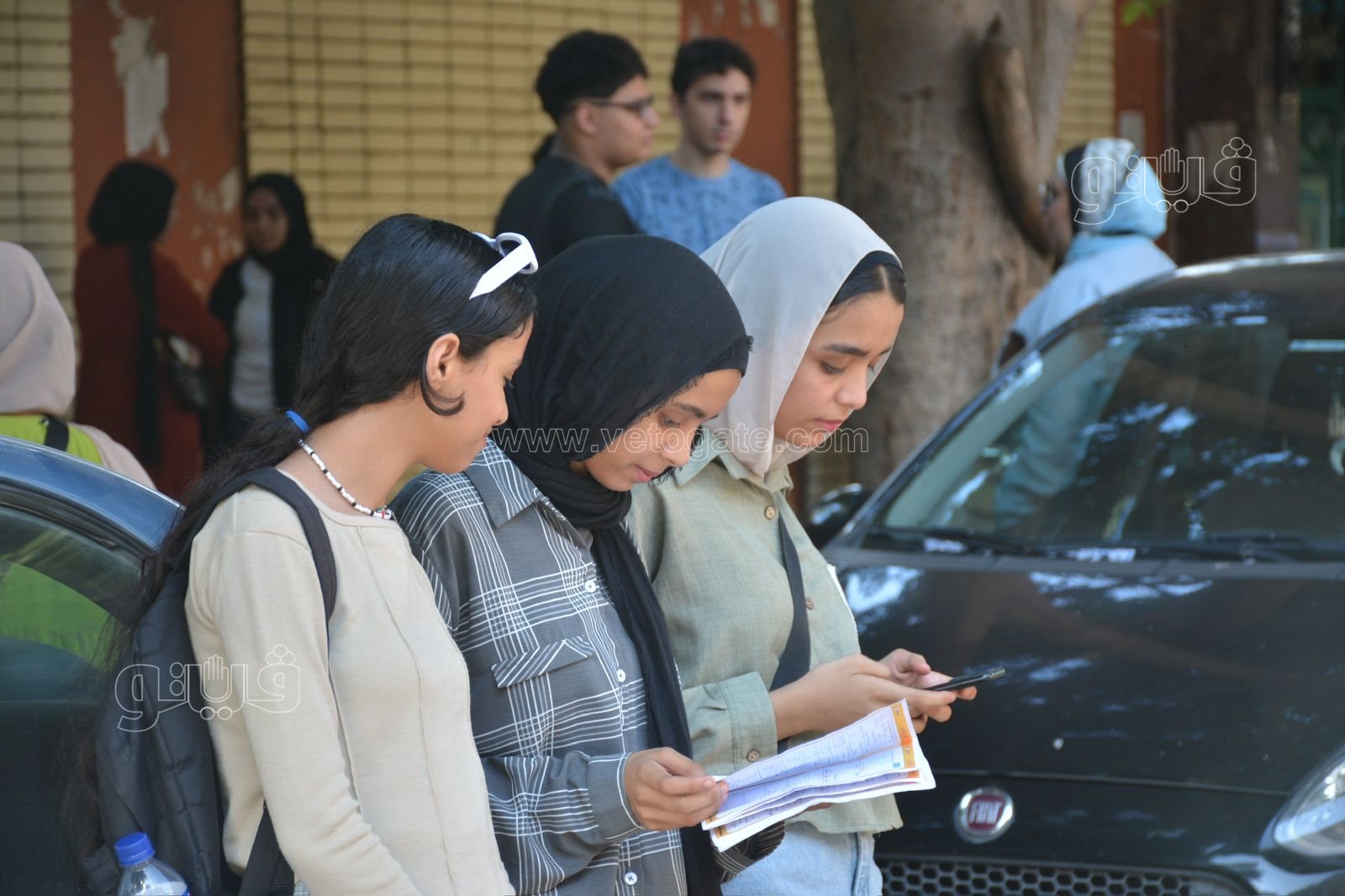وحرص طلاب الثانوية العامة 2024 على المراجعة النهائية أمام المدرسة قبل الدخول للجنة لأداء امتحان الديناميكا