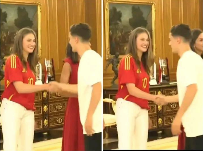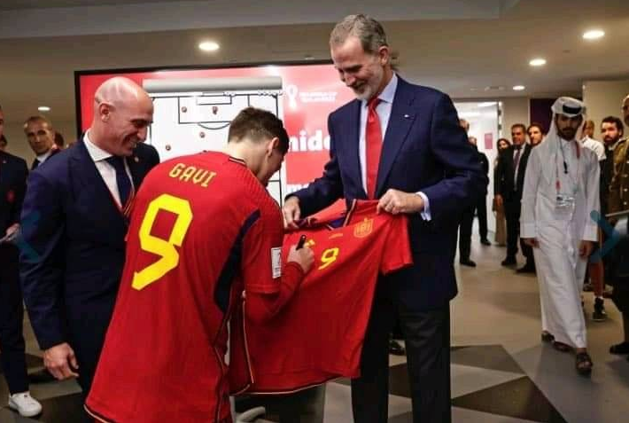 واجتمعت العائلة الملكية الإسبانية، الملك فيليب وزوجته الملكة ليتيزيا وابنتيهما الأميرة ليونور وشقيقتها الأميرة إنفانتا، مع بعثة المنتخب الإسباني، وظهر بابلو جافي، في المقر الملكي، وصافحته الأميرة ليونور مرتدية قميص المنتخب الإسباني لكرة القدم.