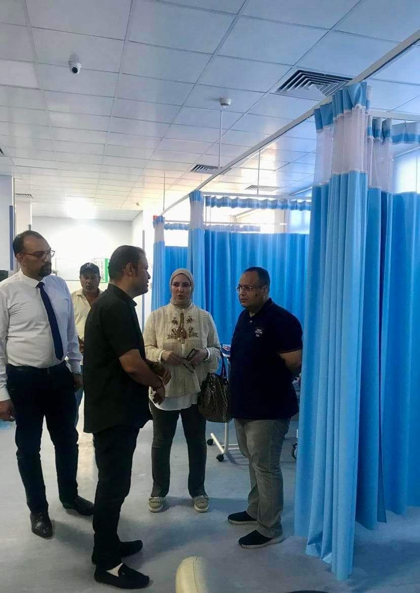 بدأت الجولة بزيارة مستشفى الحميات والجهاز الهضمي، تفقد خلالها مبنى الطوارئ وجرى مناقشة جاهزية دخوله للخدمة وما تم من تجهيزه بالأثاث الطبي والأجهزة الطبية كما تم المرور على غرفة الكهرباء والمولدات ومناقشة موقفها الحالي كما تفقد غرف العناية المركزة واطلع على الترددات وحرص على الاستماع لآراء ومقترحات المرضى من متلقي الخدمات الصحية، للتعرف على أي تحديات تواجههم خلال تلقي الخدمة الطبية الخاصة بهم، كما أكد على ضرورة الانتهاء من سرعة الانتهاء من الأعمال الإدارية لدخول المبنى للخدمة.