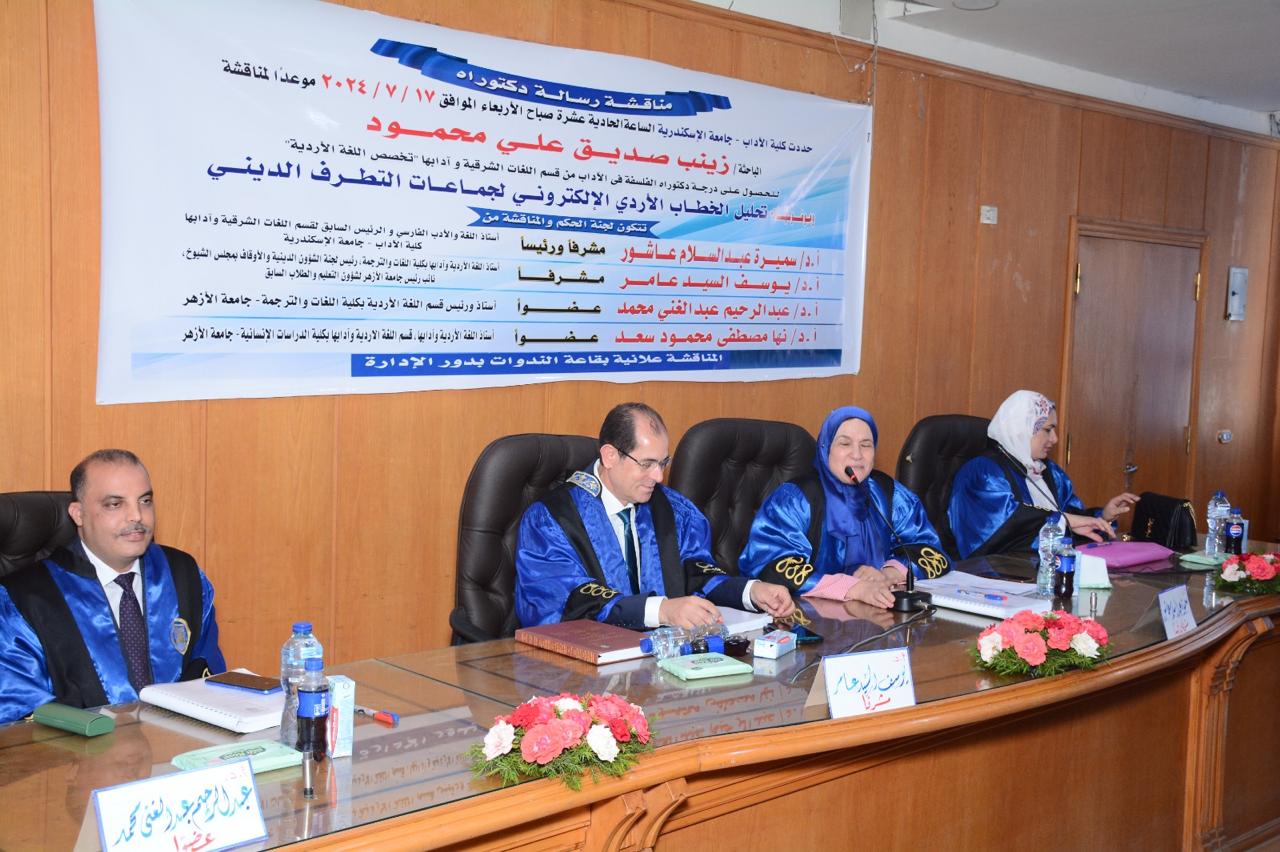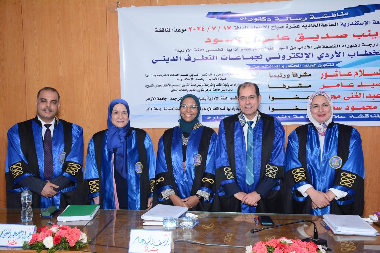 جامعة الإسكندرية تناقش رسالة دكتوراه عن تحليل الخطاب الأردي الإلكتروني لجماعات التطرف الديني