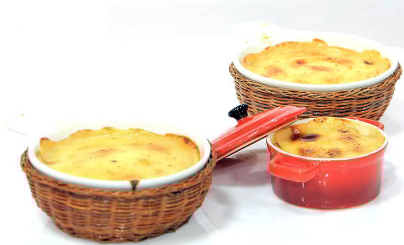 ولكن قوامه يكون اخف قليلًا من البشاميل العادي ثم يوضع القرع المهروس والمضاف اليه مكسرات في صينية مدهونة قليل من البشميل