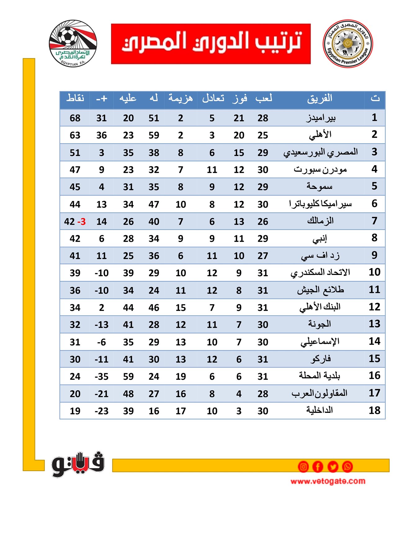 1- بيراميدز 68 نقطة