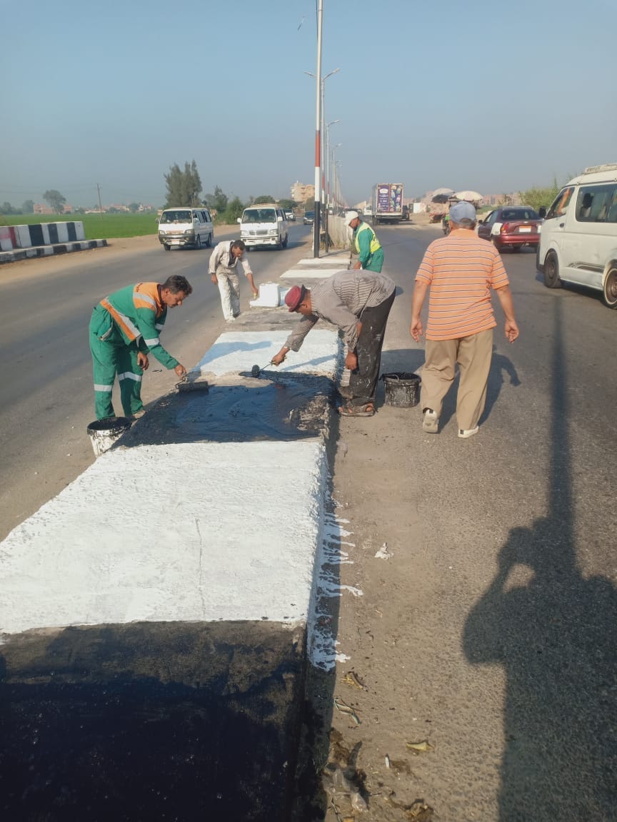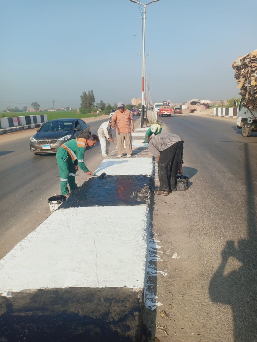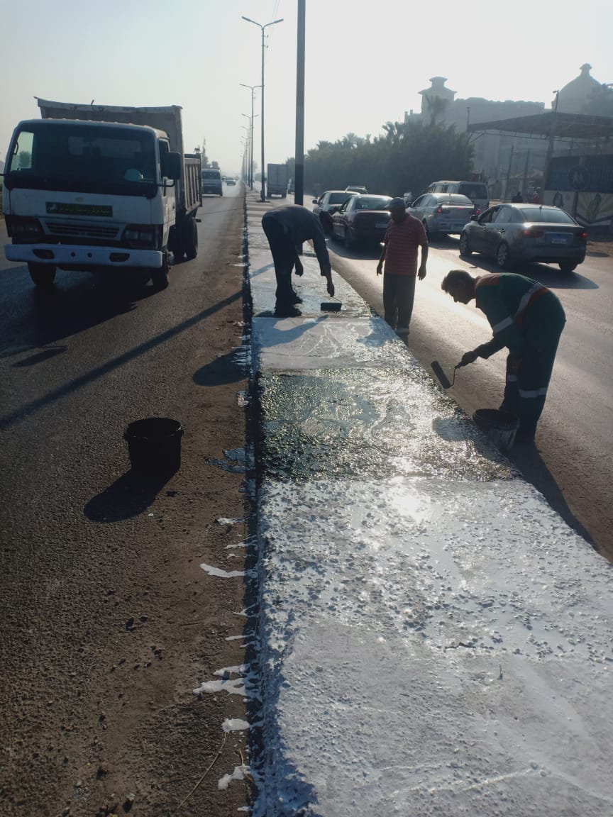 وتم إستكمال اعمال الدهانات على طريق مصر الزراعى عند محور الزنكلون و تم متابعة اعمال النظافه والتجميل من رفع القمامه والاتربه وذلك بمعاونة رجال تحسين البيئة