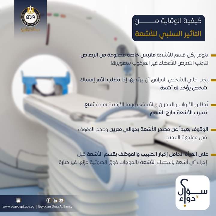 وجهت هيئة الدواء المصرية نصائح للحماية من مخاطر الأشعة منها: