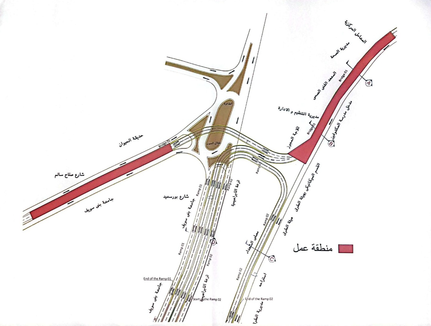 ـ الاتجاه من العبور إلى شارع صلاح سالم في حارة مرورية بعرض 4.5 متر بجوار سور حديقة الحيوان، مع إزالة الرصيف الملاصق لسور الحديقة، ثم تعود الحركة إلى طبيعتها بعد تلك المسافة.
