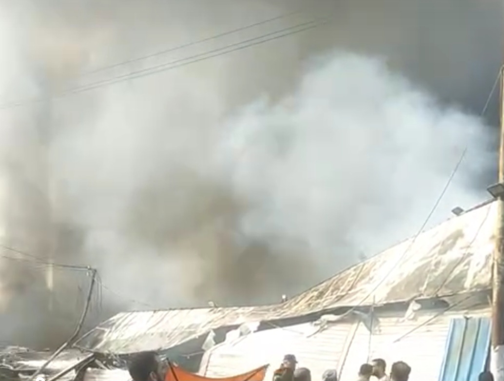 شهدت منطقة الموقف بمدينة بنها حريق هائل داخل معرض للملابس، وتم الدفع بـ8 سيارات إطفاء للسيطرة على الحريق.