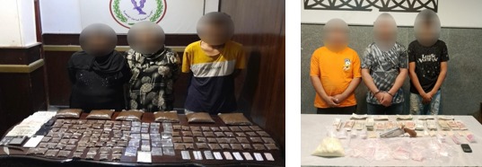 كما تم ضبط (عنصرين إجراميين – لهما معلومات جنائية)، وبحوزتهما (1,200 كيلو جرام لمخدر الهيروين، والقى القبض على (عنصر إجرامى) وبحوزته (3 آلاف قرص مخدر لعقار "الترامادول" – فرد خرطوش وعدد من الطلقات).