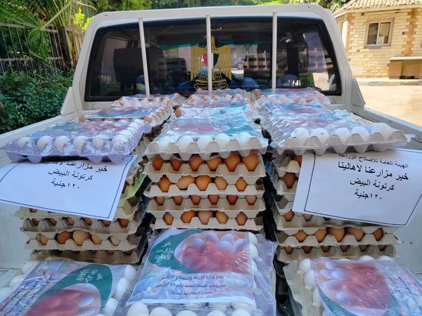 أطلقت وزارة الزراعة واستصلاح الأراضي، ممثلة في الهيئة العامة للإصلاح الزراعي، كميات من بيض المائدة من إنتاج مشروعات الهيئة للبيع للمواطنين بسعر ١٢٠ جنيها للكرتونة، في ٧ محافظات من خلال ٣١ منفذا متحركا فضلا عن المنافذ الثابتة بالمحافظات.