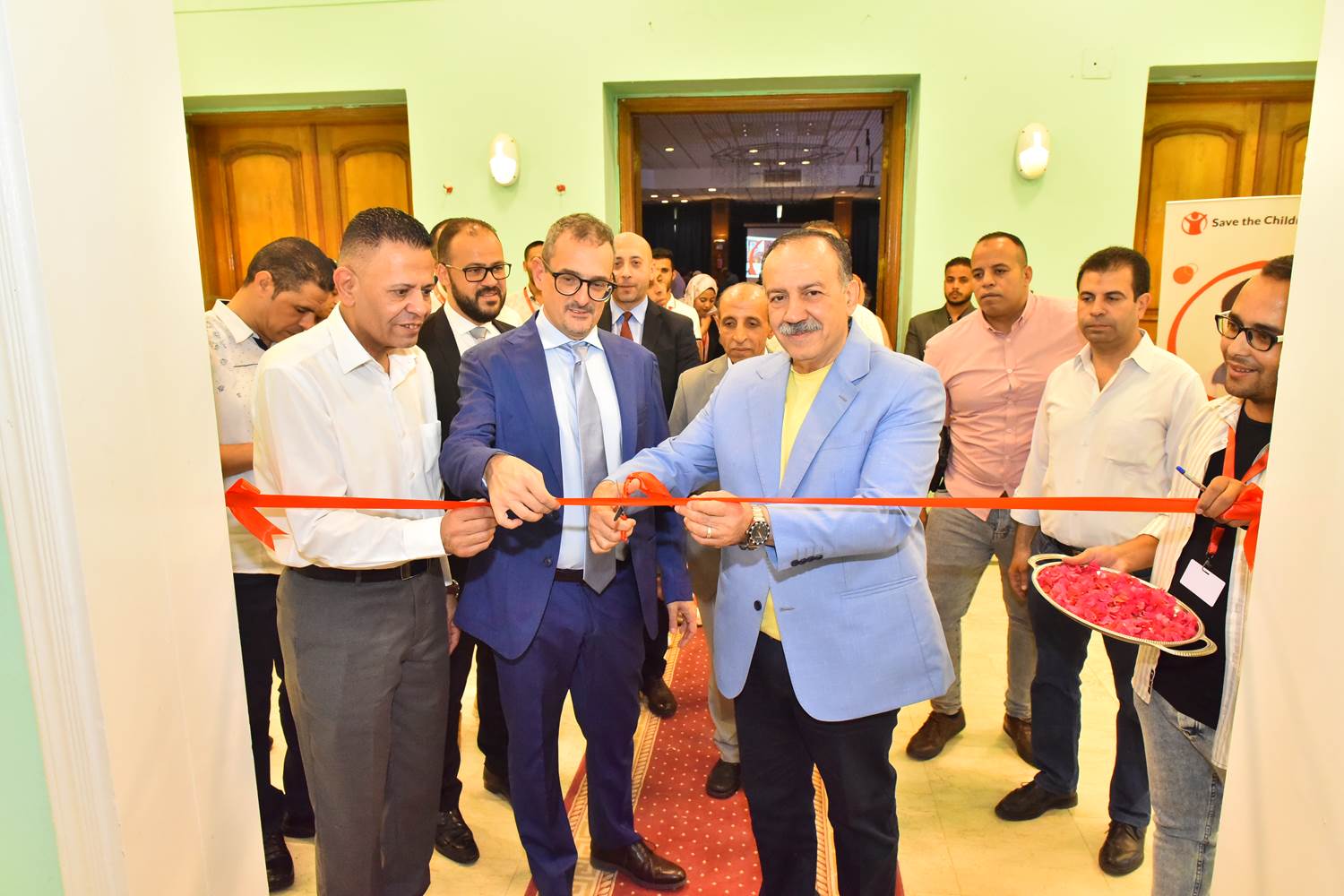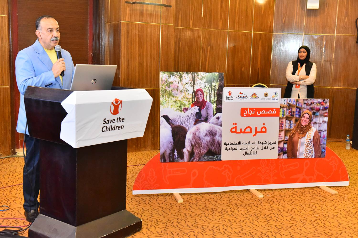 جاء ذلك بحضور ماتيو المدير القطرى لهيئة إنقاذ الطفولة ومدحت عبد الرشيد مدير التشغيل الذاتى ونقل الأصول مشروع فرصة بوزارة التضامن الإجتماعى ومجدى نجيب وكيل وزارة التضامن الإجتماعى والمهندس أسامة كامل مدير مكتب هيئة إنقاذ الطفولة بأسيوط وبعض وكلاء الوزارات المختلفة وممثلى الجمعيات الشريكة وبعض المستفيدين والمستفيدات من المشروع.