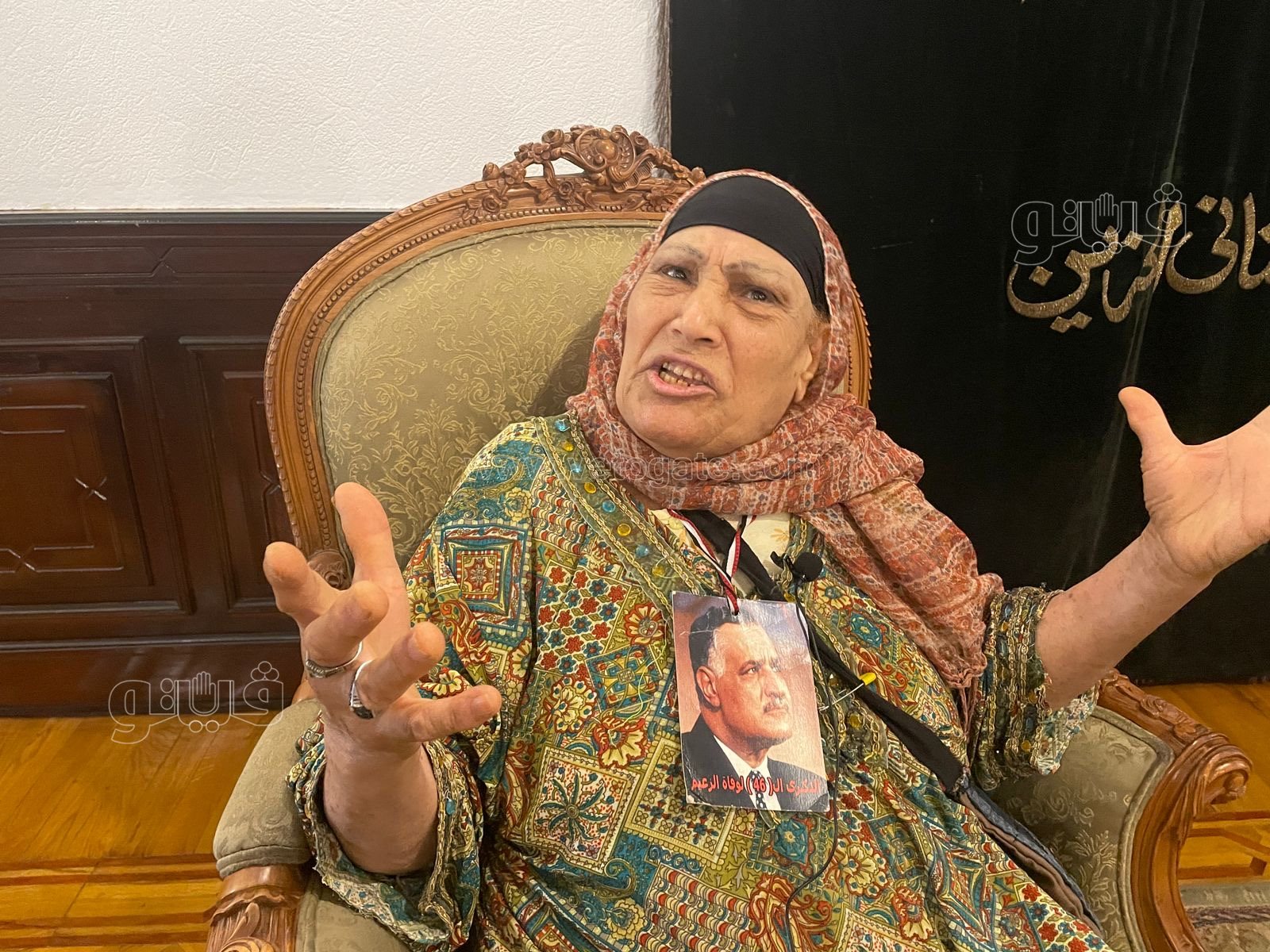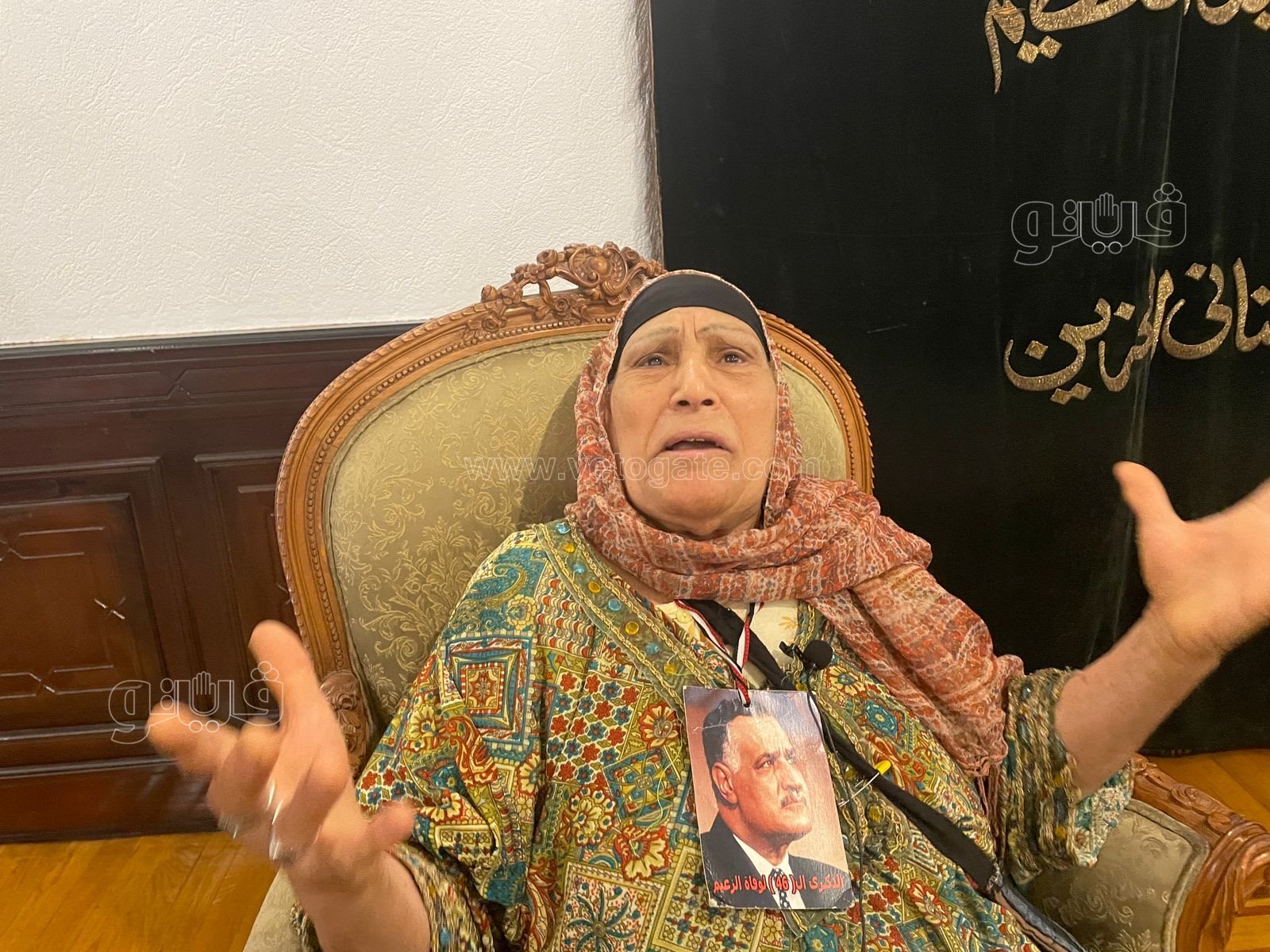 حضرت سيدة في الثمانين من العمر وهي تحمل صورة الزعيم الراحل جمال عبد الناصر على صدرها للاحتفال بالذكرى الـ 72 لـثورة 23 يوليو 1952.