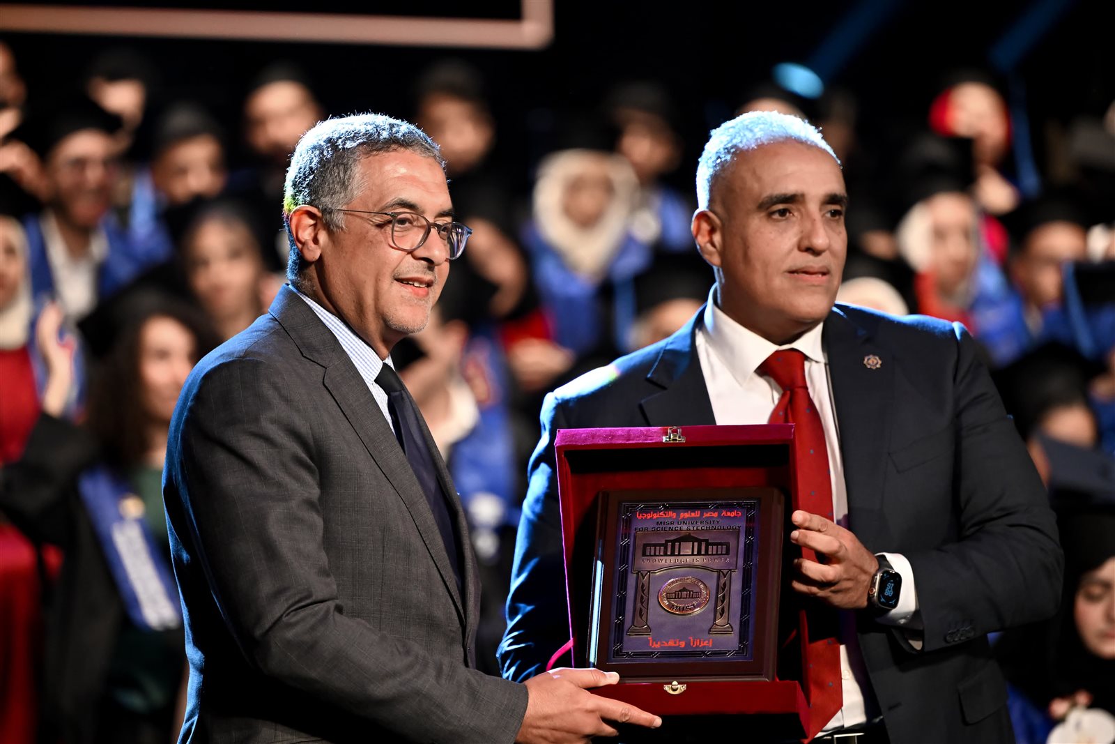 وعلى هامش الحفل كرمت جامعة مصر للعلوم والتكنولوجيا الدكتور أشرف صبحى وزير الشباب والرياضة، بدرع الجامعة، تقديرا لإنجازاته فى قطاع الشباب والرياضة.