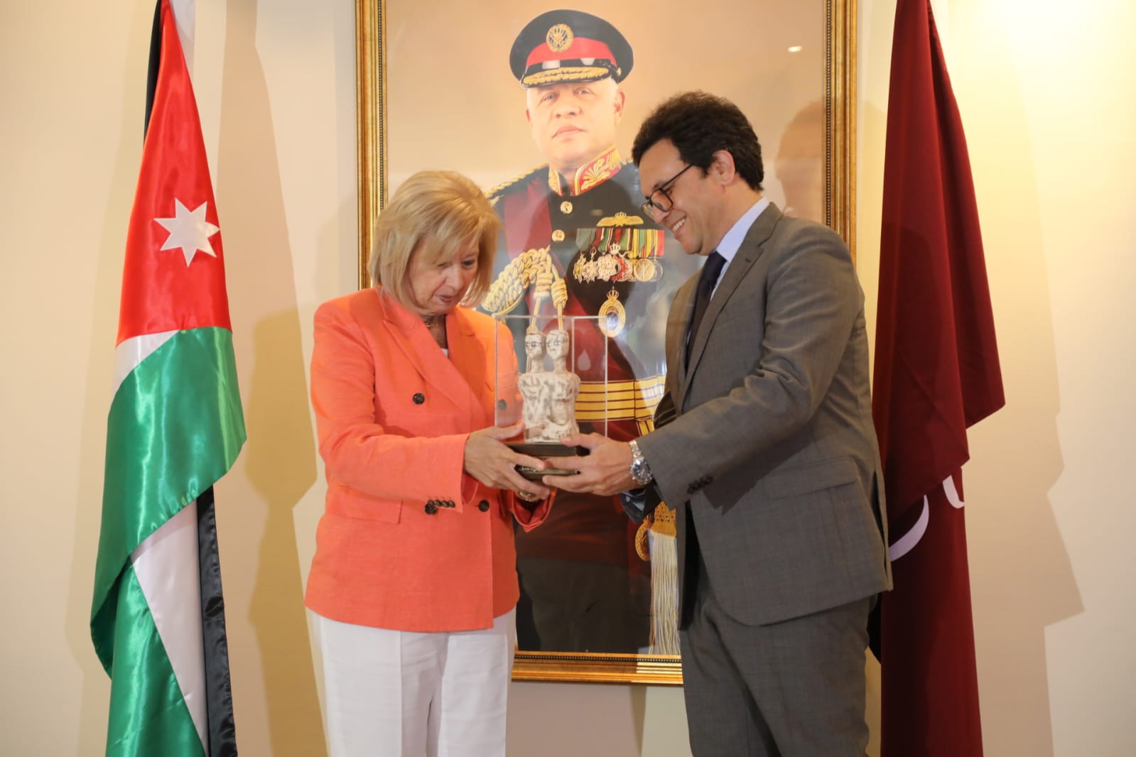 من جانبها، رحبت وزيرة الثقافة الأردنية، بوزير الثقافة المصري مُؤكدة أهمية تعزيز التبادل الثقافي بين مصر والأردن، لما له من دورٍ كبير في تقوية الروابط الأخوية معربة عن تطلعها أن تكون تلك الزيارة بداية للمزيد من الفعاليات الثقافية والفنية المتنوعة للتعريف بمقومات الثقافة في مصر والأردن.