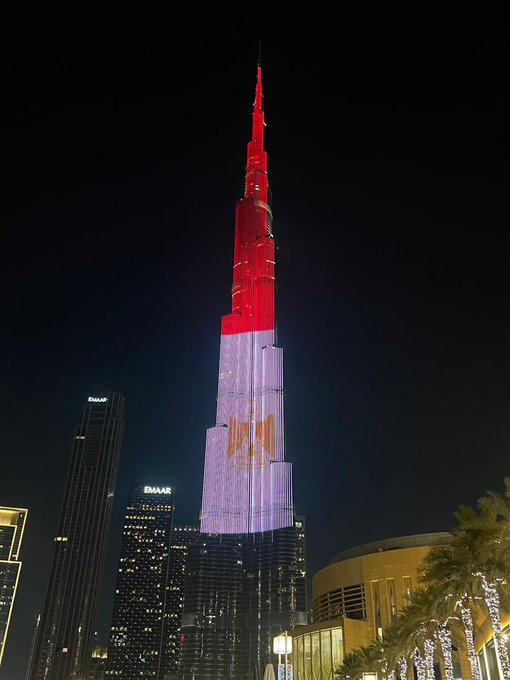 علم مصر يزين مطار دوميديدوفو بموسكو وبرج خليفة في دبي (صور)