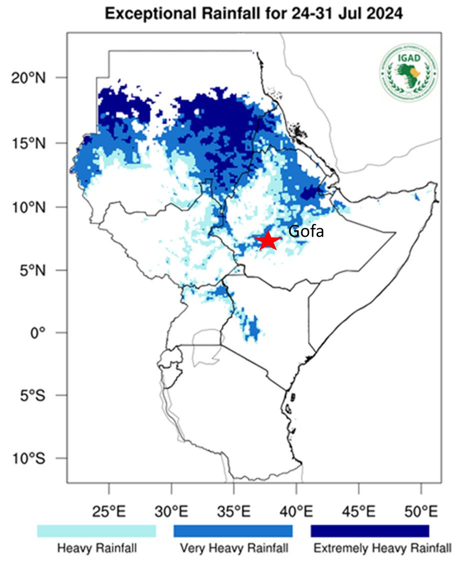 وأضاف أستاذ الموارد المائية والجيولوجيا: حتى الآن معدل الأمطار أعلى من المتوسط فى أماكن عديدة فى إثيوبيا والسودان، ومع شدة الأمطار صباح اليوم الثلاثاء 23 يوليو 2024 حدثت انهيارات أرضية فى منطقة جوفا (Gofa) جنوب غرب إثيوبيا فى منطقة الأخدود الاثيوبى (جزء من الأخدود الأفريقى الذى يمر باثيوبيا)، حيث المناطق الجبلية والمكونة من عدة طبقات أرضية مائلة بسبب النشاط الزلزالى ما يجعلها تتشرب كميات كبيرة من مياه الأمطار، لافتا إلى أن ذلك يؤدي إلى زيادة وزنها وانزلاقها مع الانحدار ويزيد من هذه الحركة إذا كانت الطبقات العليا أسفلها طبقة طينية تعمل فى هذه الحالة كمادة غرينية تساعد على الانزلاقات.