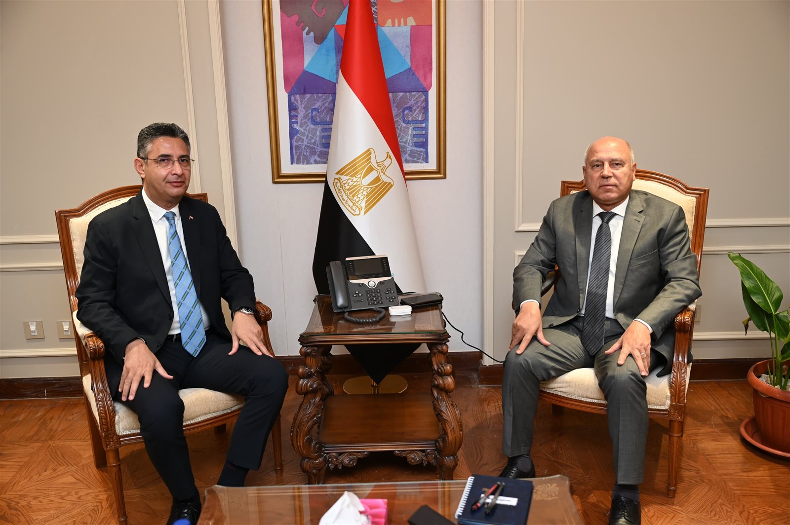 كما استعرض الجانبان خلال اللقاء سبل ازالة المعوقات التى تواجه بعض الشاحنات بالموانئ البحرية والموانئ البرية الحدودية وتوفير عدد من الشاحنات من خلال شركات النقل التابعة لوزارة النقل وتعظيم نقل القمح والسلع الاستراتيجية بالسكك الحديدية والنقل النهري والتى تساهم في انخفاض تكلفة النقل وأكثر وسائل النقل أمانًا وأقلها حوادث واستهلاكًا للطاقة بالإضافة إلى خفض الانبعاثات الملوثة للبيئة والقدرة علي نقل الحمولات ذات الأطوال والأوزان غير النمطية، وكيفية النهوض بمصانع السلع الغذائية وخاصةً (السكر - الزيت) من حيث إجراءات تسهيل إصدار الرخصة والسجل الصناعي ومساعدة المصانع المتعثرة وحل مشاكل جميع المستثمرين خاصة مع تنفيذ وزارة الصناعة لخطة شاملة لتطوير الصناعة في مصر لتحويل مصر لقلعة صناعية كبري تنفيذا لتوجيهات الرئيس عبد الفتاح السيسي.