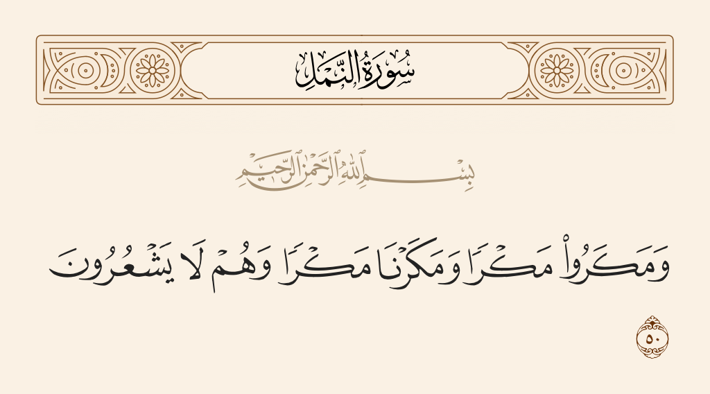 قال تعالى: «وَمَكَرُوا مَكْرًا وَمَكَرْنَا مَكْرًا وَهُمْ لَا يَشْعُرُونَ».