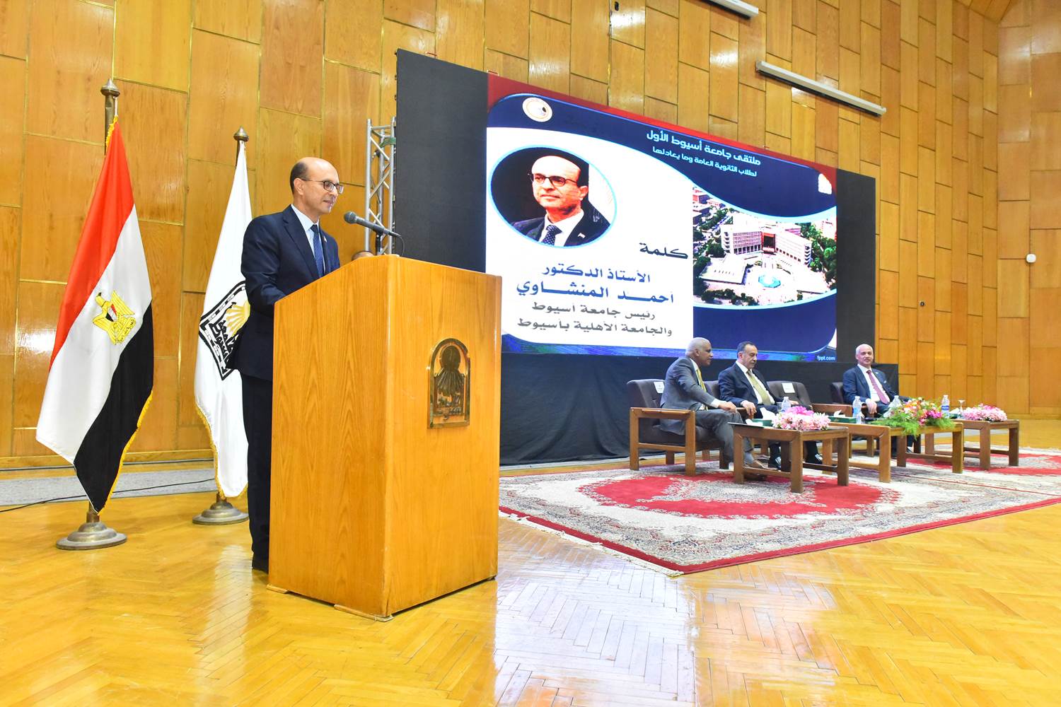 كما أكد محافظ أسيوط على أهمية ملتقى الطلاب الأول الذى تنظمه جامعة أسيوط بهدف توعية الطلاب بضرورة بناء توجهاتهم العلمية والدراسية لاختيار التخصص الجامعي المناسب ليصبح الطالب عضو بناء في المجتمع، وتوعية الطلاب بكيفية إختيار دراستهم الجامعية وفقًا لامكاناتهم ومهاراتهم وميولهم، لافتًا إلى سعى الدولة لدعم العملية التعليمية وتأهيل الطلاب لسوق العمل فضلًا عن الخدمات التى تقدمها الدولة لشباب الخريجين من تدريبات في كافة التخصصات ومساعدتهم على إقامة مشروعات صغيرة ومتوسطة وتوفير القروض اللازمة لهم، فضلًا عن تبنى أفكار ومبادرات الشباب بالتنسيق مع مؤسسات المجتمع المدني ورجال الأعمال لتنفيذ تلك الأفكار والمشروعات على أرض الواقع.