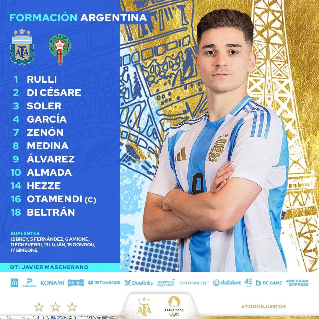 التشكيل الرسمي لمنتخب الأرجنتين أمام المغرب في أولمبياد باريس