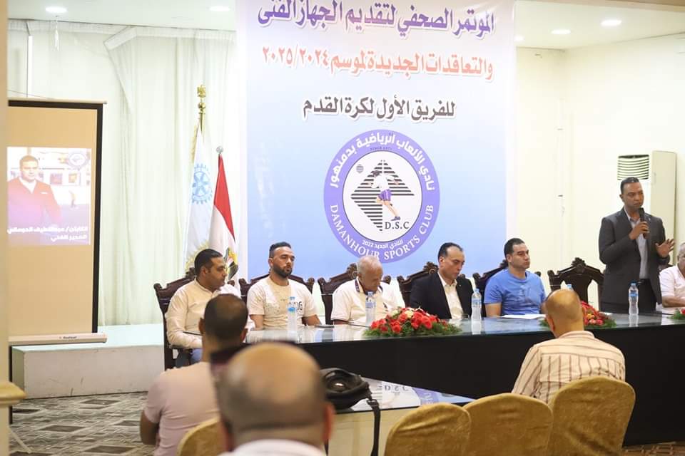 عقد مجلس إدارة نادي دمنهور برئاسة وليد بديوى مؤتمرًا صحفيًا، اليوم الأربعاء، بمقر النادي بقاعة وجيه أباظة، لتقديم عبداللطيف الدوماني المدير الفني الجديد للفريق الأول لكرة القدم، فى حضور لجنة الكرة.