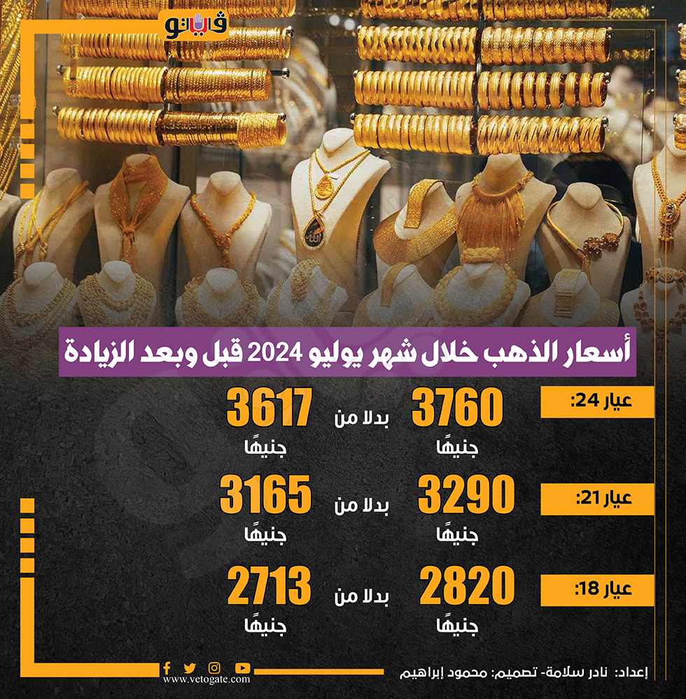 أسعار الذهب خلال شهر يوليو 2024 قبل وبعد الزيادة (انفوجراف) الخميس 25/يوليو/2024 - 12:29 م 7/25/2024 12:29:26 PM أسعار الذهب اليوم،فيتو نادر سلامة شارك طباعة 18 حجم الخط شارك طباعة الذهب عيار 18 الذهب عيار 24 جرام الذهب عيار 18 جرام الذهب عيار 24