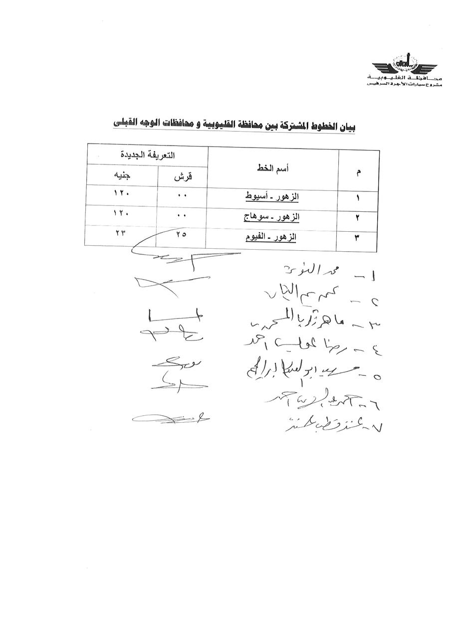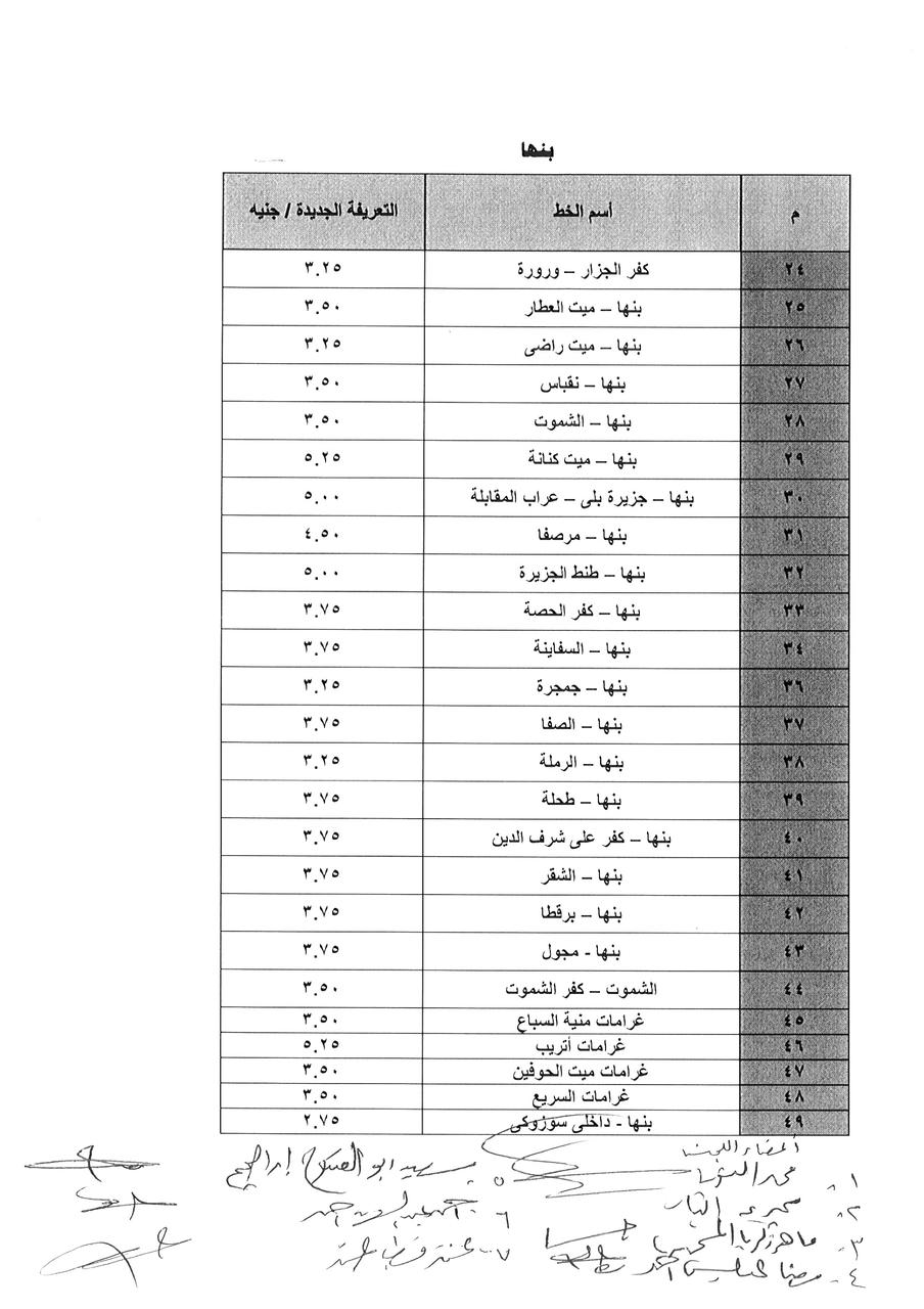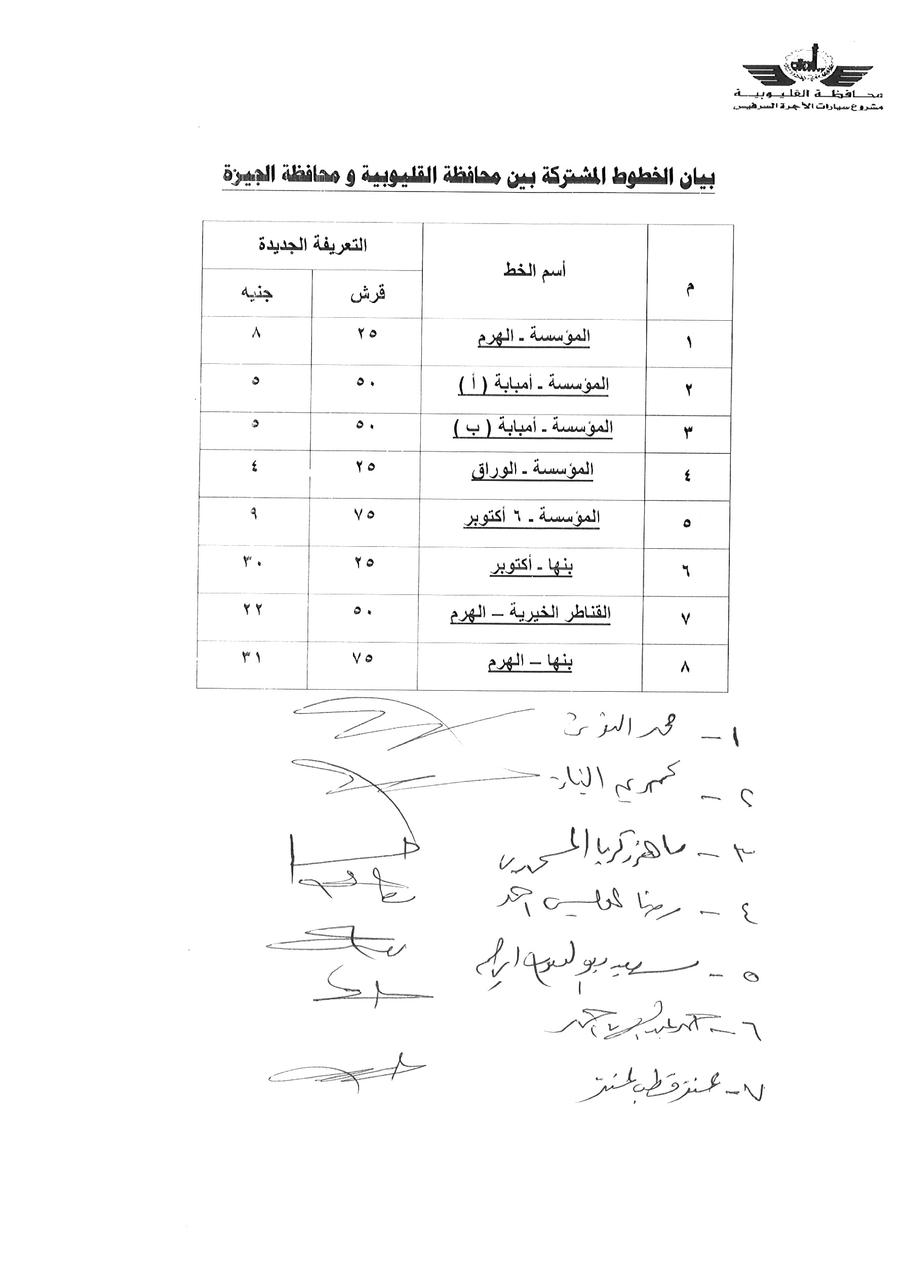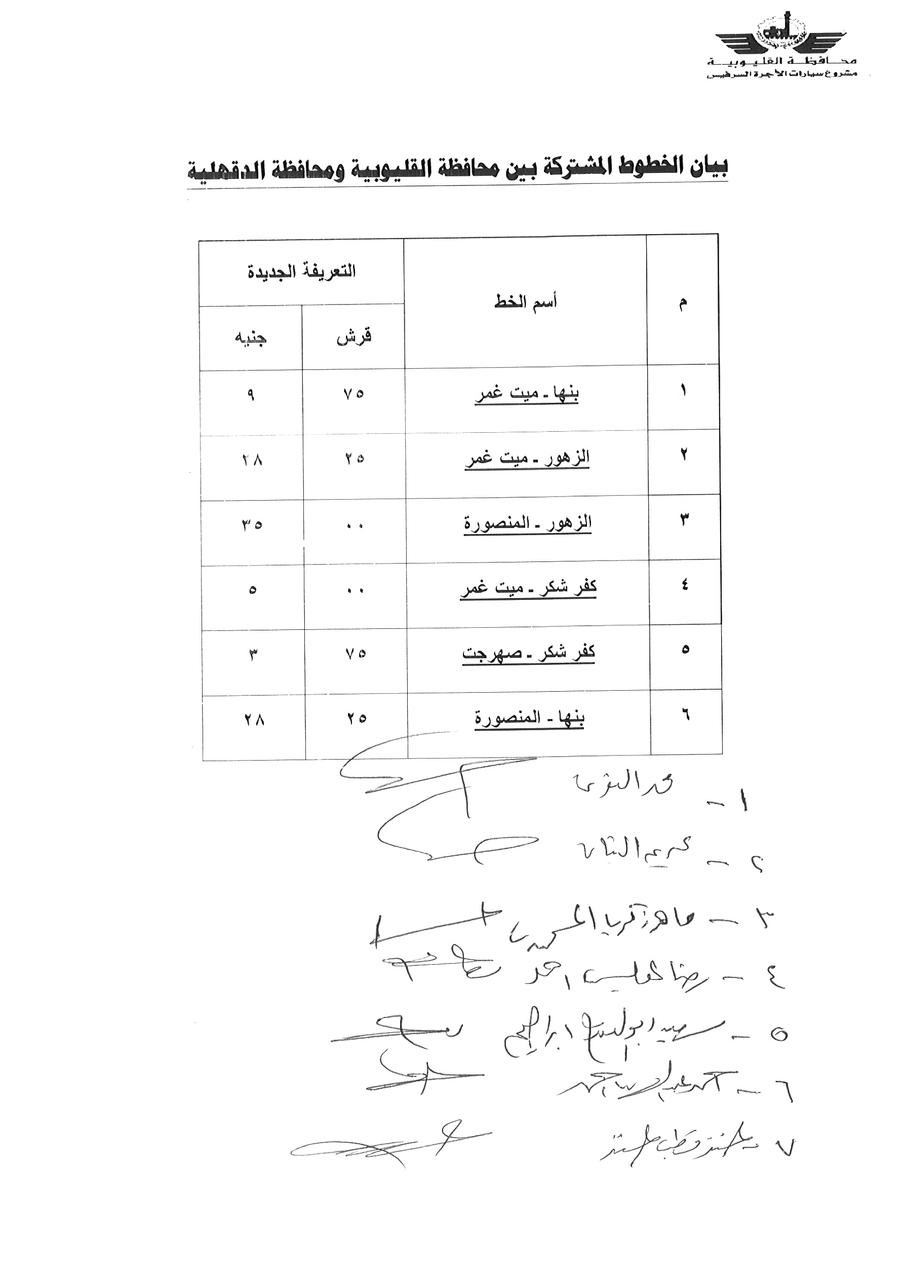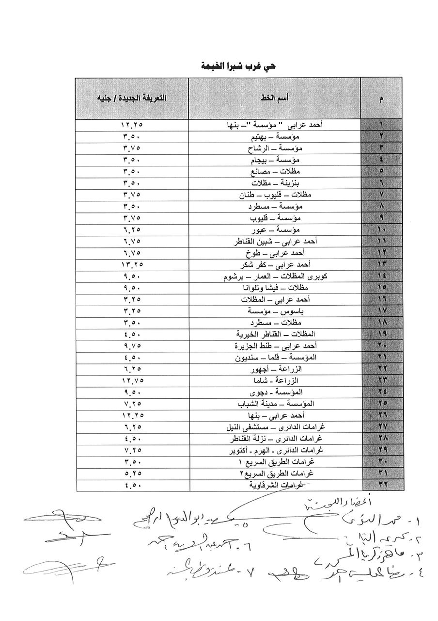 أصدر اليوم المهندس ايمن عطيه محافظ القليوبية قرار رقم (720) لسنة 2024 الخاص بتعديل التعريفة الجديدة والمقررة لركوب سيارات الأجرة والسرفيس بدائرة المحافظة، وذلك بعد زيادة أسعار البنزين والسولار.