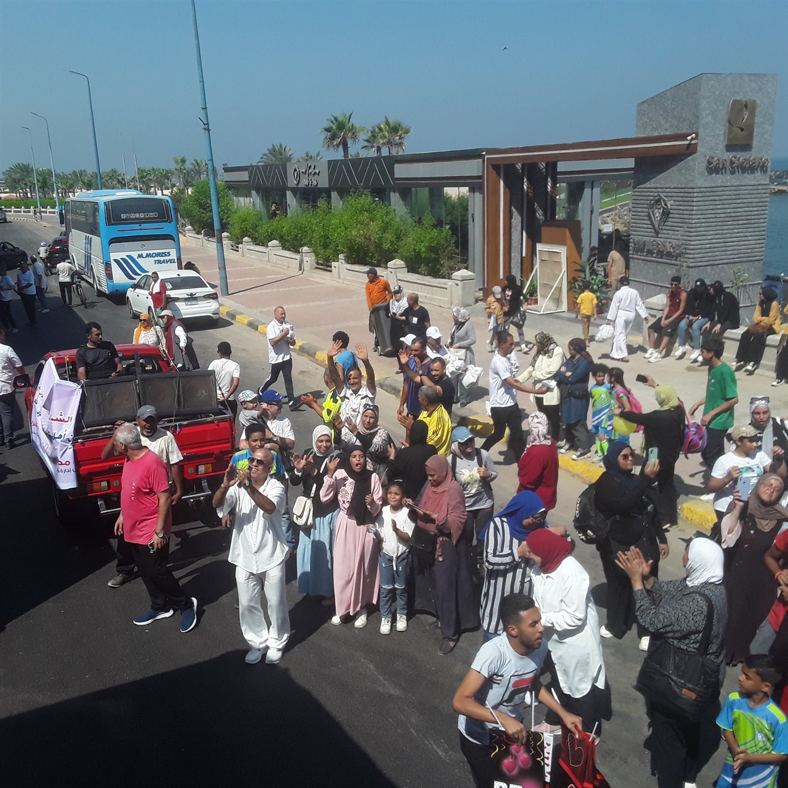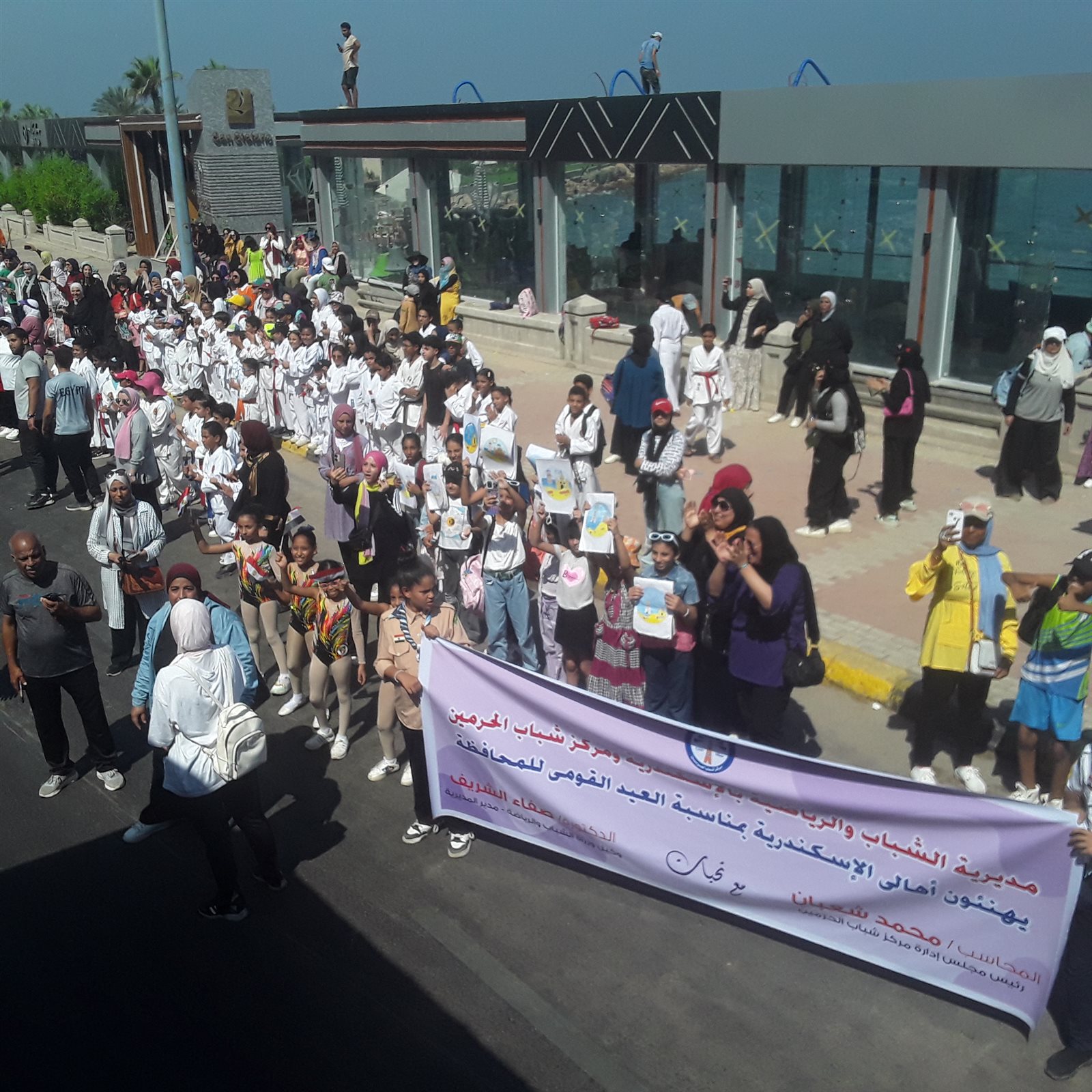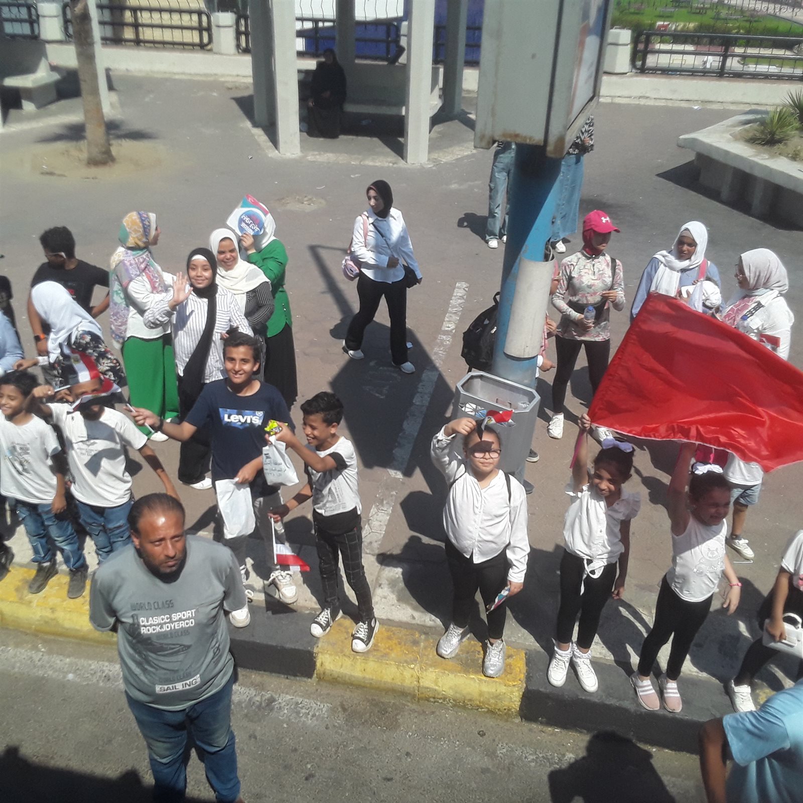 كما اصطف العشرات من الأطفال على طول كورنيش البحر المتوسط، وقدموا بعض الاستعراضات الفنية من البراعم والمواهب التابعة لمديرية الشباب والرياضة، كما شاركت شركة مياه الشرب برئاسة المهندس أحمد جابر بالتعاون مع رؤساء الأحياء بالمحافظة وإدارة السياحة والمصايف برئاسة الدكتور محمد عبد الرازق.