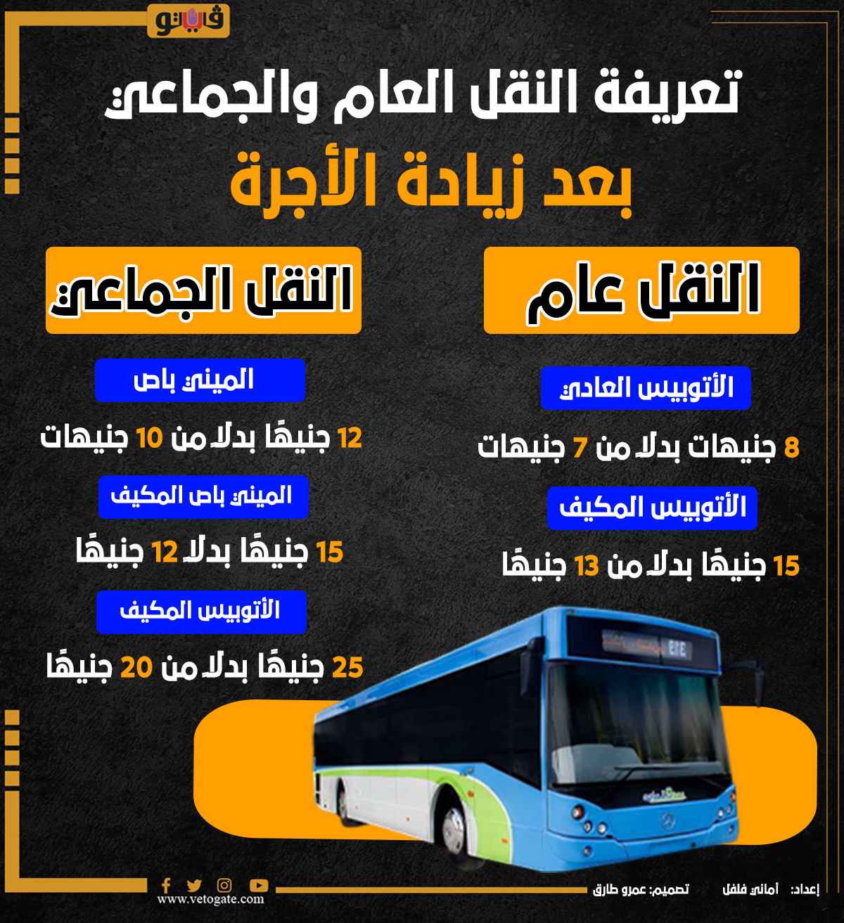 تعريفة النقل العام والجماعي بعد زيادة الأجرة (إنفوجراف) الجمعة 26/يوليو/2024 - 04:36 ص 7/26/2024 4:36:56 AM النقل العام، فيتو - أماني فلفل تصميم :عمرو طارق شارك طباعة 18 حجم الخط شارك طباعة النقل الجماعي تعريفة النقل العام تعريفة المينى باص النقل العام