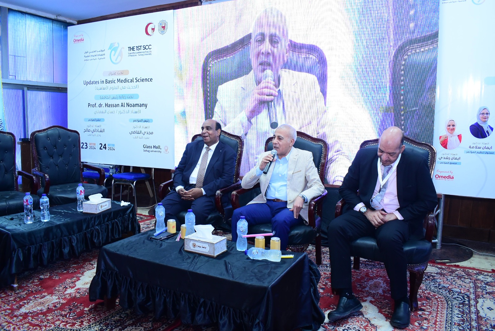 نظمت كلية الطب البشري بجامعة سوهاج المؤتمر العلمي الأول لأقسام العلوم الطبية الأساسية تحت عنوان "الحديث في العلوم الطبية الأساسية" بحضور الدكتور عبد الناصر يس نائب رئيس الجامعة لشئون التعليم والطلاب، والدكتور مجدي القاضي عميد الكلية ورئيس المؤتمر، والدكتور الشاذلي صالح موسي وكيل الكلية لخدمة المجتمع وتنمية البيئة ومقرر المؤتمر، ونخبة من أعضاء هيئة التدريس القائمين علي تنظيم المؤتمر وعدد من الطلاب وشباب الأطباء بالكلية.